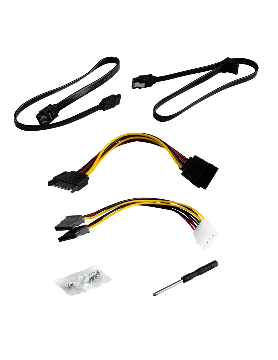 Kit Adaptador de UNYKAch para discos 2,5" a bahía de 3.5" doble, con cuatro adaptadores de corriente SATA.
