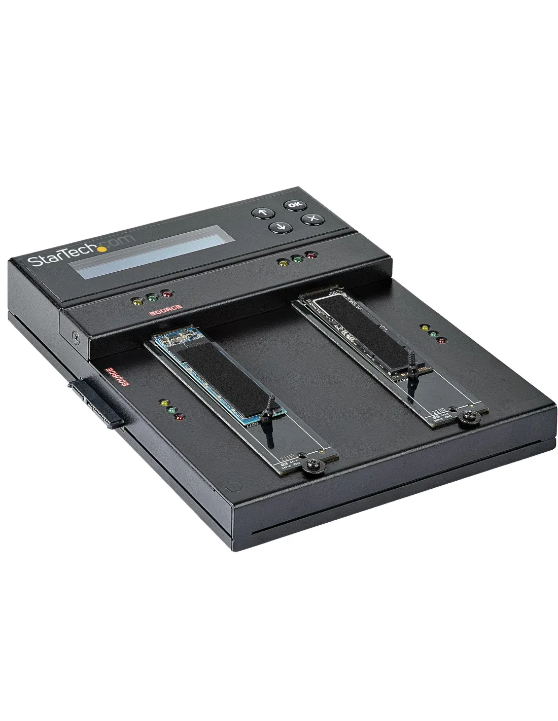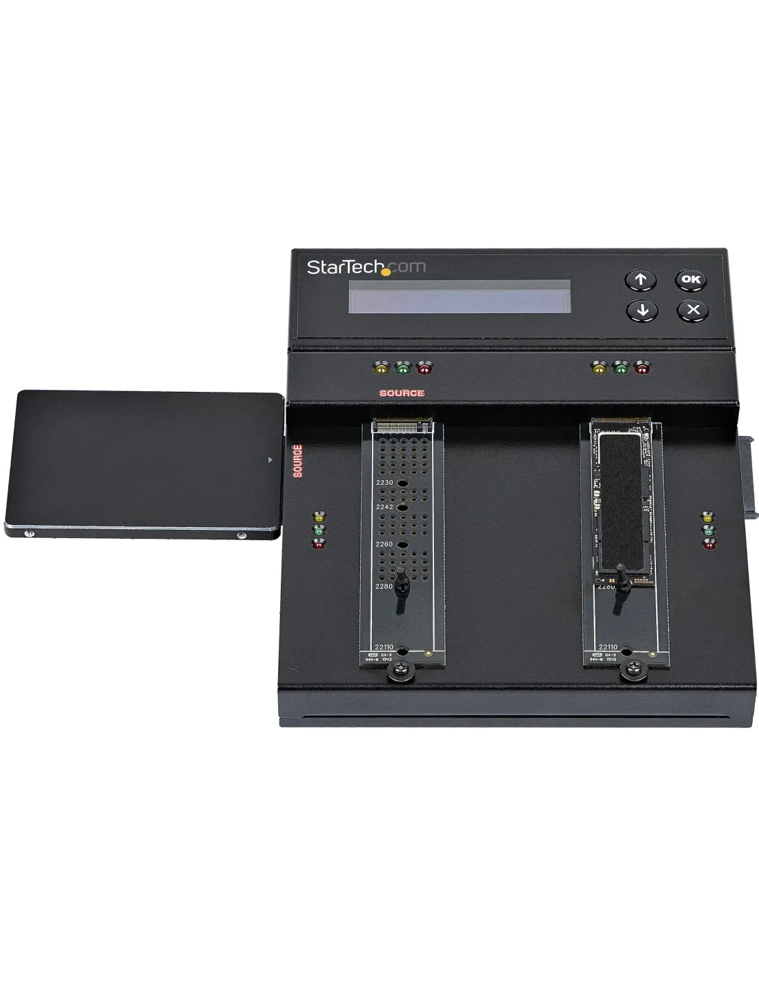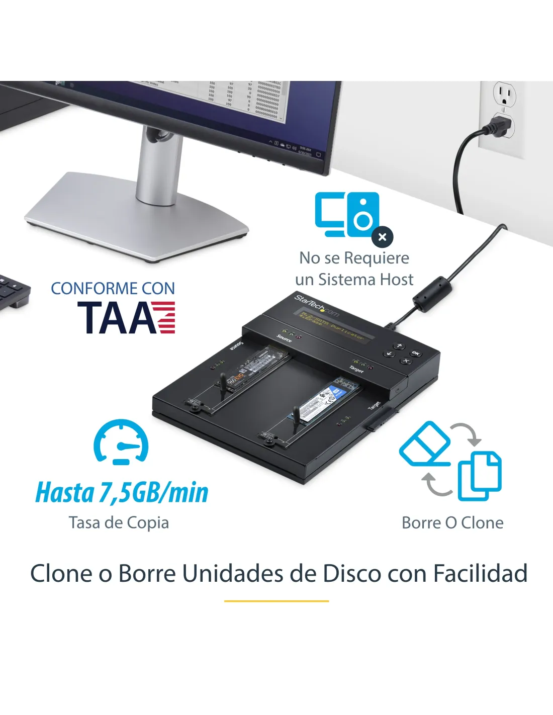 StarTech.com Clonador y Borrador Autónomo de Unidades de Almacenamiento SATA M.2 - NVMe M.2 - Duplicador Copiador Externo Offline de Unidades HDD SSD M.2 PCIe AHCI/NVMe, SATA M.2 - 2,5/3,5 TAA, Duplicador de HDD/ SSD (discos duros/unidades de estado sólido), 1 copias, SATA, Negro, Metal, Copiar, Borrado