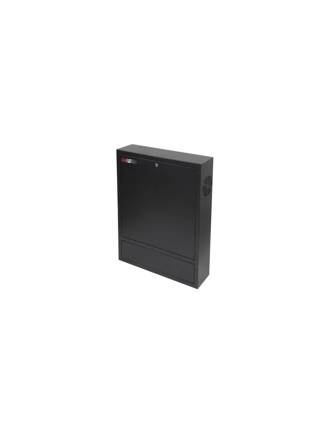 | Características | - Estructura en acero macizo de 1,5 mm - Predisposición para dos ventiladores de 120 mm a los lados - Predisposición para el microcontacto integrado Cooper CSA Serie 314 en la puerta para la conexión al sistema de alarma - Soportes extraíbles estándar de rack de 19" con 2 unidades (2 frontales + 2 traseros) fijados a la puerta - Cierre con una llave de seguridad tubular numerada diferente para cada armario - Compartimento inferior que solo se puede abrir desde el interior para la gestión de la conexión - Orificios de entrada de cable en la parte inferior - Dimensiones: 75Hx60Lx15P cm - Peso: 18 Kg - Color: Negro RAL 9005 |