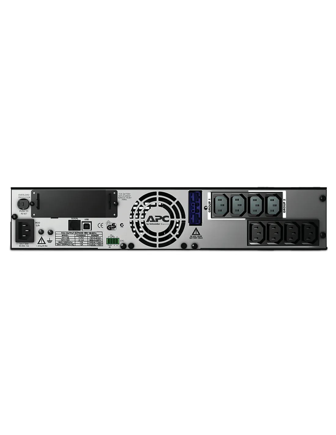 APC Smart-UPS. Topología UPS: Línea interactiva, Capacidad de potencia de salida (VA): 1 kVA, Potencia de salida: 800 W. Tipo de salida AC: C13 acoplador, Conector: C14 acoplador, Cantidad de salidas AC: 8 salidas AC. Tecnología de batería: Sealed Lead Acid (VRLA), Capacidad de la batería: 299 VAh, Tiempo típico de respaldo a carga completa: 8,1 min. Factor de forma: Montaje en rack/Torre o Montaje en bastidor/Torre, Color del producto: Negro, Capacidad del rack: 2U. Certificados de conformidad: RoHS, Certificación: CE, EN/IEC 62040-1, EN/IEC 62040-2, RCM, VDE, REACH, PEP, EOLI