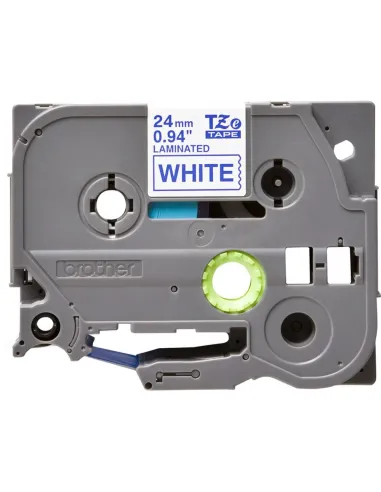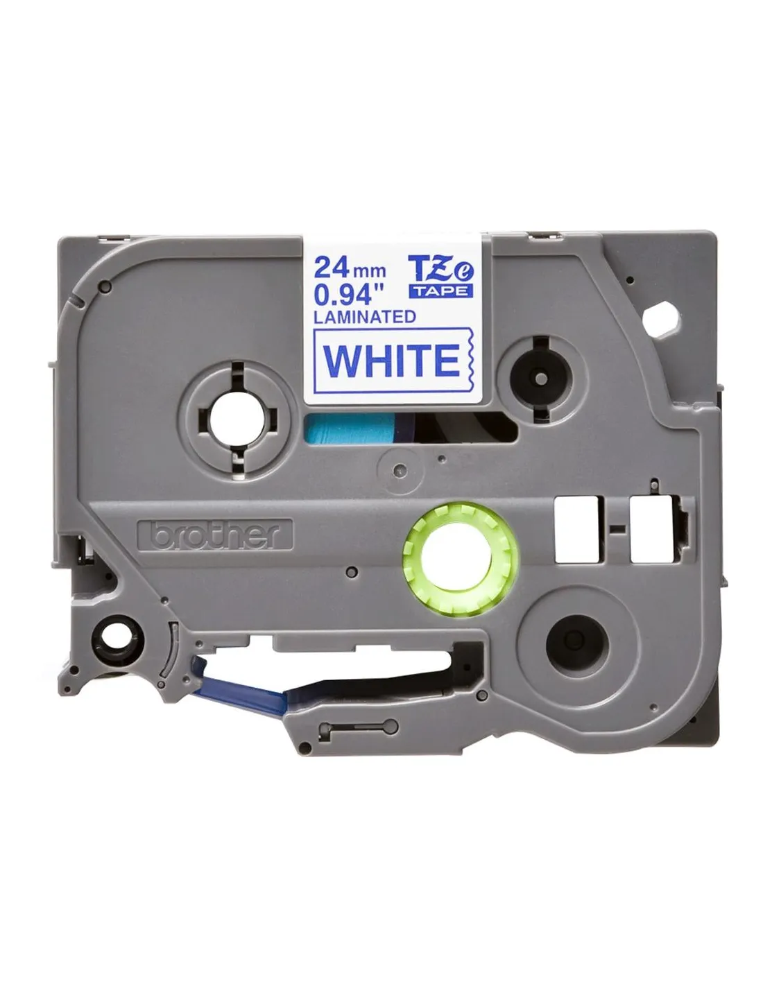 Brother TZE-253. Color de etiqueta: Azul sobre blanco, Tipo de cinta: TZe, Tecnología de impresión: Transferencia térmica. Ancho de cinta: 2,4 cm, Longitud de cinta: 8 m, Ancho: 28 mm. Altura del palé: 15,5 cm, Número de cajas de cartón por palé: 30 pieza(s), Número de capas por palé: 5 pieza(s). Tamaño de cinta: 2,4 cm