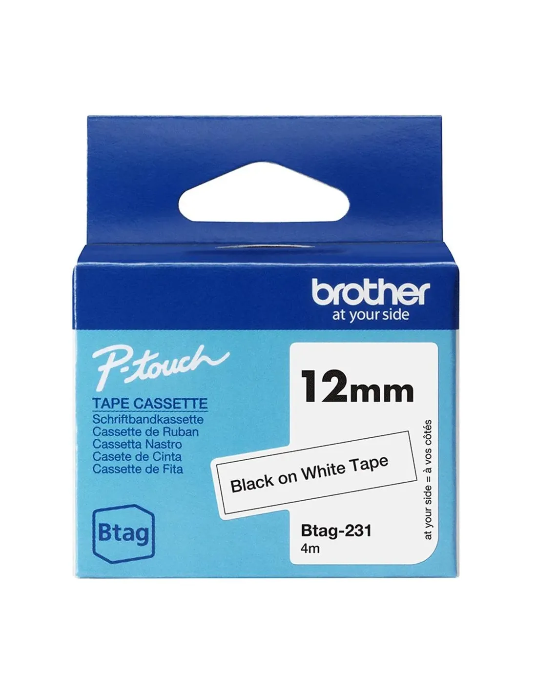 Características de la Cinta Brother BTAG231 Negro sobre Blanco 12 mmLa **cinta Brother BTAG231** es una solución práctica y duradera para la organización doméstica. Diseñada para etiquetar desde objetos de uso cotidiano hasta libros de texto o materiales escolares, esta cinta original garantiza resultados legibles y resistentes. Ideal para quienes buscan mantener el orden en la cocina, el dormitorio, la oficina o cualquier espacio del hogar.Etiquetas resistentes para el uso diarioLa cinta BTAG231 está fabricada para soportar las condiciones comunes del entorno doméstico. Gracias a su composición de alta calidad, las etiquetas impresas con esta cinta **resisten el agua, los productos de limpieza, los cambios de temperatura y el desgaste diario**.Resistente al microondas, lavavajillas y congeladorEtiquetas que no se despegan ni borran con facilidadDurabilidad garantizada para uso prolongadoCompatibilidad y calidad garantizadaEsta cinta es un **casete original Brother**, lo que asegura una impresión de alta calidad y una integración perfecta con los rotuladores Brother compatibles. Su diseño de **12 mm de ancho y 4 metros de largo** permite crear etiquetas claras y visibles para distintos tipos de objetos.Ancho: 12 mmLongitud: 4 metrosColor: Texto negro sobre fondo blancoOtras especificacionesModelo: Brother BTAG231Tipo de producto: Cinta de etiquetadoUso recomendado: DomésticoTipo de casete: Original Brother