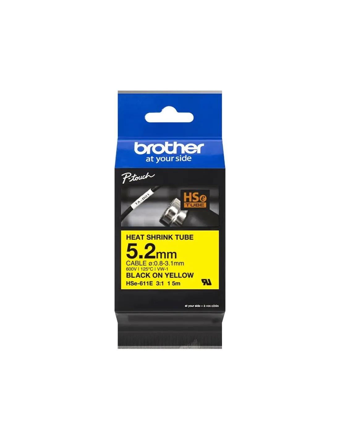 Características del tubo termorretráctil HSE611EEl tubo termorretráctil **HSE611E** está diseñado para una **identificación rápida, segura y duradera de cables** en instalaciones eléctricas, redes o entornos industriales. Gracias a su capacidad de contracción mediante calor, este tubo permite una aplicación sencilla y un ajuste firme sobre cables de distintos grosores, asegurando una marcación visible y estable en el tiempo.Retracción rápida y adaptabilidad 3:1Fabricado con material termorretráctil de alta calidad, este tubo se contrae al aplicar calor, **ajustándose perfectamente al contorno del cable**. Su relación de retracción 3:1 lo hace ideal para adaptarse a cables con distintos diámetros.Relación de contracción: 3:1Fácil aplicación con pistola de calorMarcación clara y duradera tras el retráctilDiseño pensado para la identificación técnicaEste modelo presenta un **acabado en negro sobre fondo amarillo**, ideal para una **lectura fácil y contraste visual alto**, incluso en condiciones de poca luz o en zonas complejas de cableado. Es compatible con un rango amplio de diámetros de cable, desde los más finos hasta los más gruesos.Ancho del tubo: 5,2 mmLongitud: 1,5 metrosDiámetro recomendado del cable: de 0,8 a 3,1 mmResultados legibles y permanentesGracias a sus materiales resistentes y su buena adherencia, el tubo HSE611E **mantiene su forma y legibilidad con el paso del tiempo**, incluso en ambientes con variaciones de temperatura o manipulación frecuente de los cables.Resistencia al desgaste y al paso del tiempoIdeal para instalaciones profesionales o domésticasAcabado profesional y organizado del cableadoOtras especificacionesCódigo de producto: HSE611ETipo: Tubo termorretráctil para impresoras de etiquetasAplicación: Identificación de cables por retracción térmica