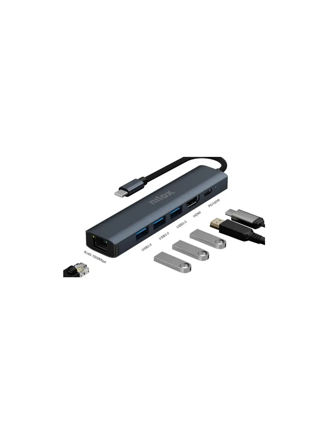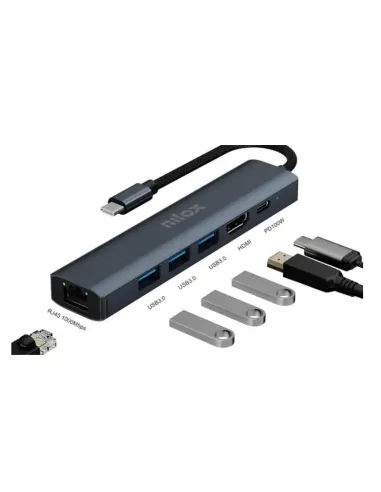 Nilox NXDSUSBC06. Marca compatible: Universal. Tipo de conector de acoplamiento: USB Tipo C. Ancho: 28 mm, Profundidad: 127 mm, Altura: 14 mm, Peso: 56 g. Color del producto: Gris