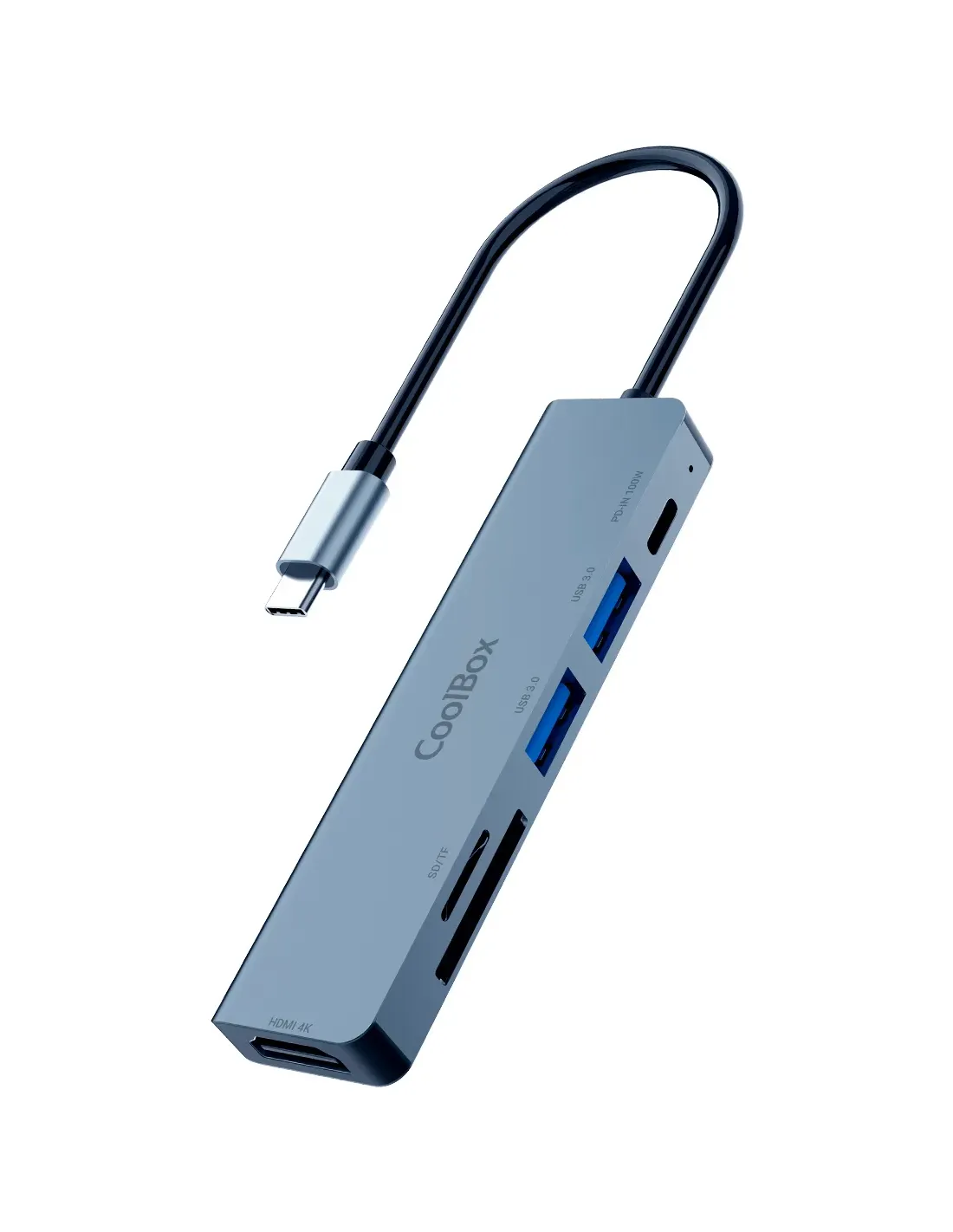 CoolBox MINIDOCK C61 ALUMINIO USB-C A HDMI 4K/2xUSB-A/USB-C PD/SD/MICROSD PC/MAC/CONSOLAS, Alámbrico, USB 3.2 Gen 1 (3.1 Gen 1) Type-C, 100 W, Gris, MicroSD (TransFlash), SD, 4K Ultra HD