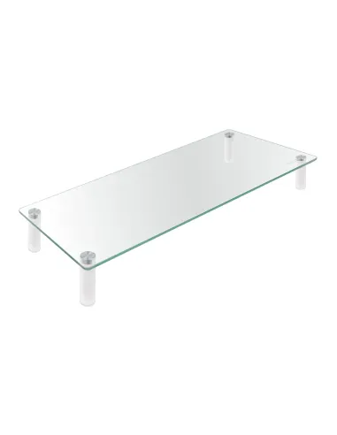TooQ TQMR061. Tipo de producto: Soporte para ordenador portátil, Color del producto: Transparente, Material: Aluminio, Silicona, Vidrio templado. Profundidad: 210 mm, Altura: 80 mm, Longitud: 560 mm. Ancho del paquete: 621 mm, Profundidad del paquete: 220 mm, Altura del paquete: 37 mm