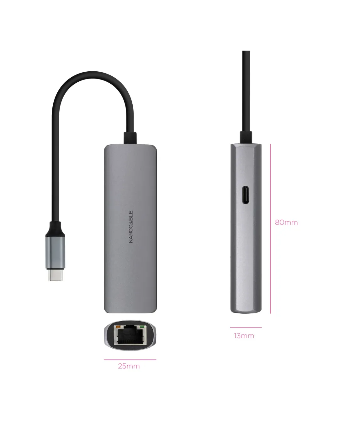 Nanocable Adaptador USB-C 3.1 a RJ45, con PD 100W, USB-C/M, Aluminio, Color Gris, 18 cm, Alámbrico, USB 3.2 Gen 1 (3.1 Gen 1) Type-C, 100 W, 1000 Mbit/s, Gris, Acrilonitrilo butadieno estireno (ABS), Aluminio