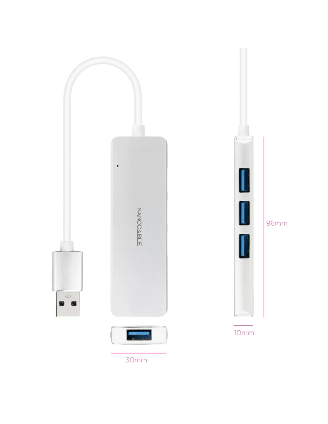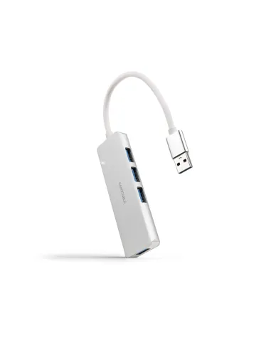 Nanocable Hub USB-A 3.0. a 4xUSB3.0, USB-A/M-USB 3.0/H, Aluminio, Color Plata, 18 cm