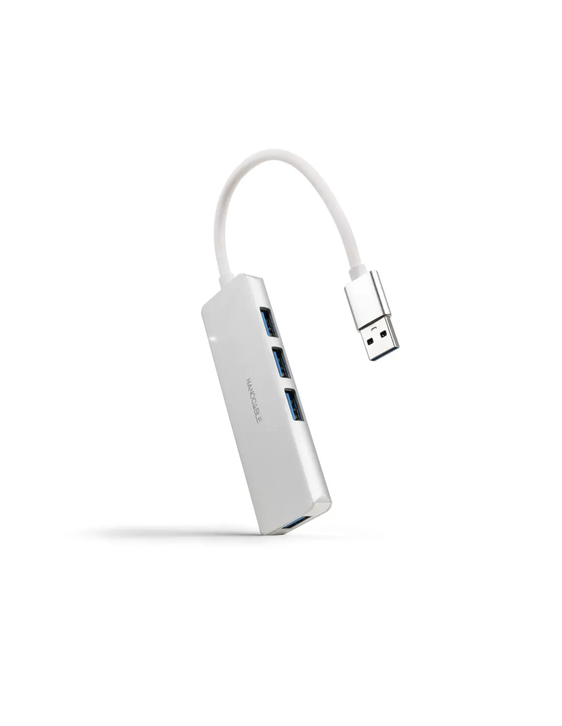 Nanocable Hub USB-A 3.0. a 4xUSB3.0, USB-A/M-USB 3.0/H, Aluminio, Color Plata, 18 cm, Alámbrico, USB 3.2 Gen 1 (3.1 Gen 1) Type-A, Plata, 5 Gbit/s, Acrilonitrilo butadieno estireno (ABS), Aluminio, USB