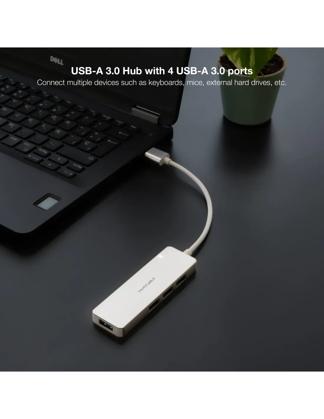 Nanocable Hub USB-A 3.0. a 4xUSB3.0, USB-A/M-USB 3.0/H, Aluminio, Color Plata, 18 cm. Tecnología de conectividad: Alámbrico, Interfaz de host: USB 3.2 Gen 1 (3.1 Gen 1) Type-A. Color del producto: Plata, Velocidad de transferencia de datos: 5 Gbit/s, Material de la carcasa: Acrilonitrilo butadieno estireno (ABS), Aluminio. Alimentación: USB, Longitud del cable USB: 0,18 m. Ancho: 96 mm, Profundidad: 30 mm, Altura: 10 mm. Cantidad por paquete: 1 pieza(s), Ancho del paquete: 180 mm, Profundidad del paquete: 10 mm