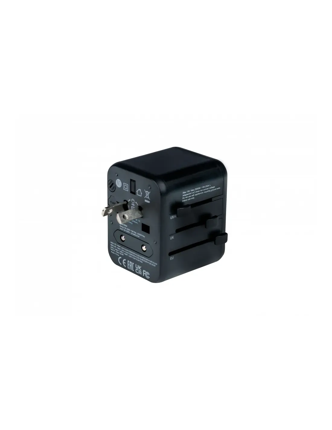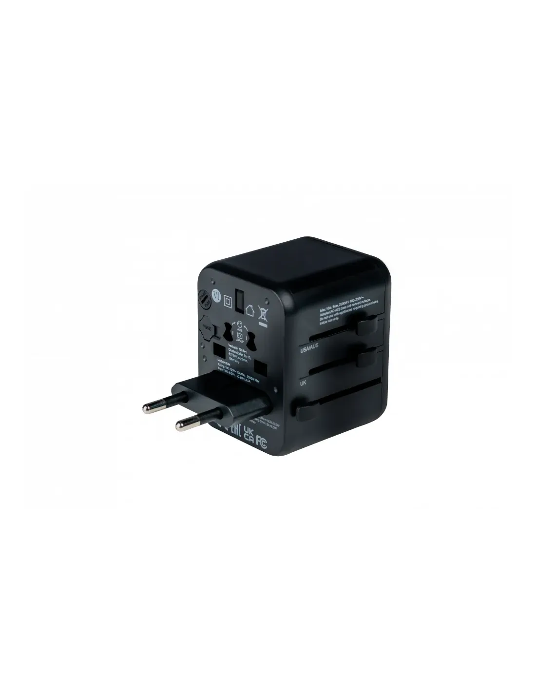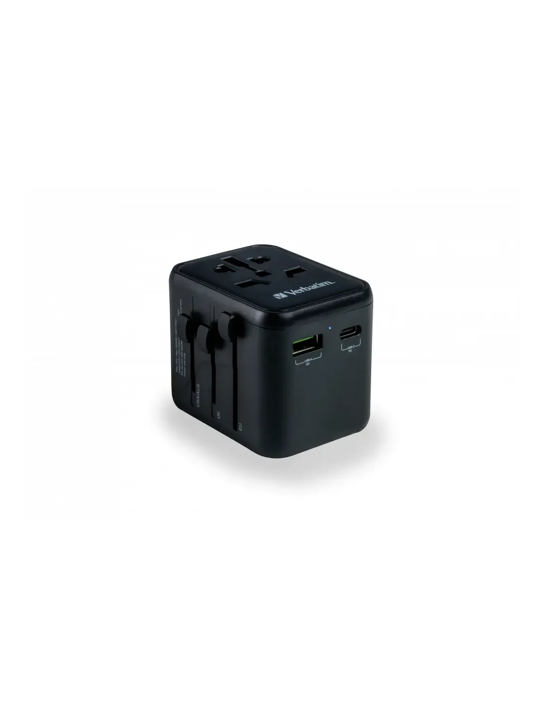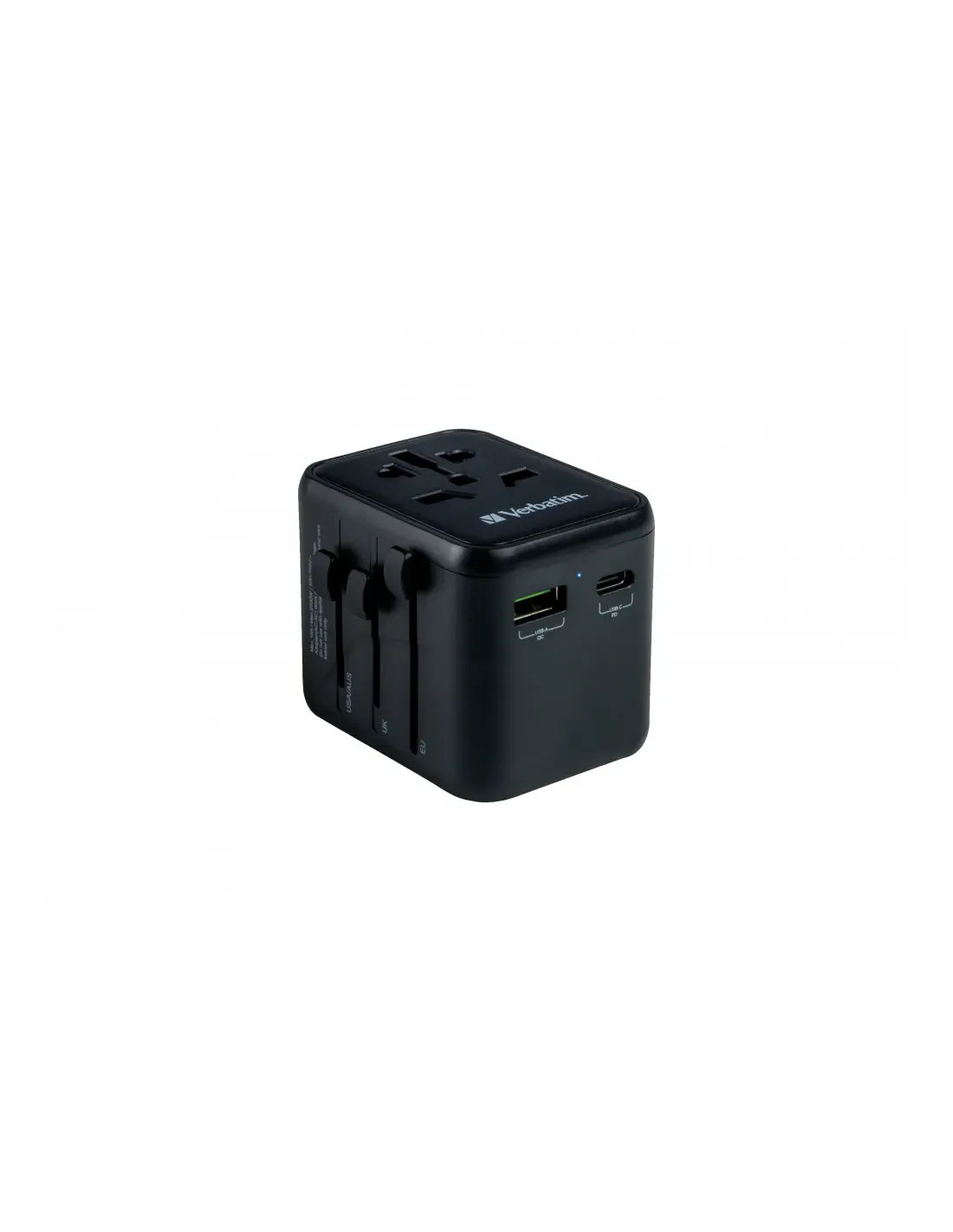Verbatim 49544. Tipo de conector: Universal, Tipo de conector hembra: Universal, Tipos de conectores universales: Tipo A, Tipo B, Tipo C (Europlug), Tipo E (FR), Tipo F, Tipo G (RU), Tipo I (AU), Tipo J (CH),.... Corriente del puerto USB: 2 A, Corriente del puerto USB 2: 3 A. Ancho: 65 mm, Profundidad: 50 mm, Altura: 64 mm