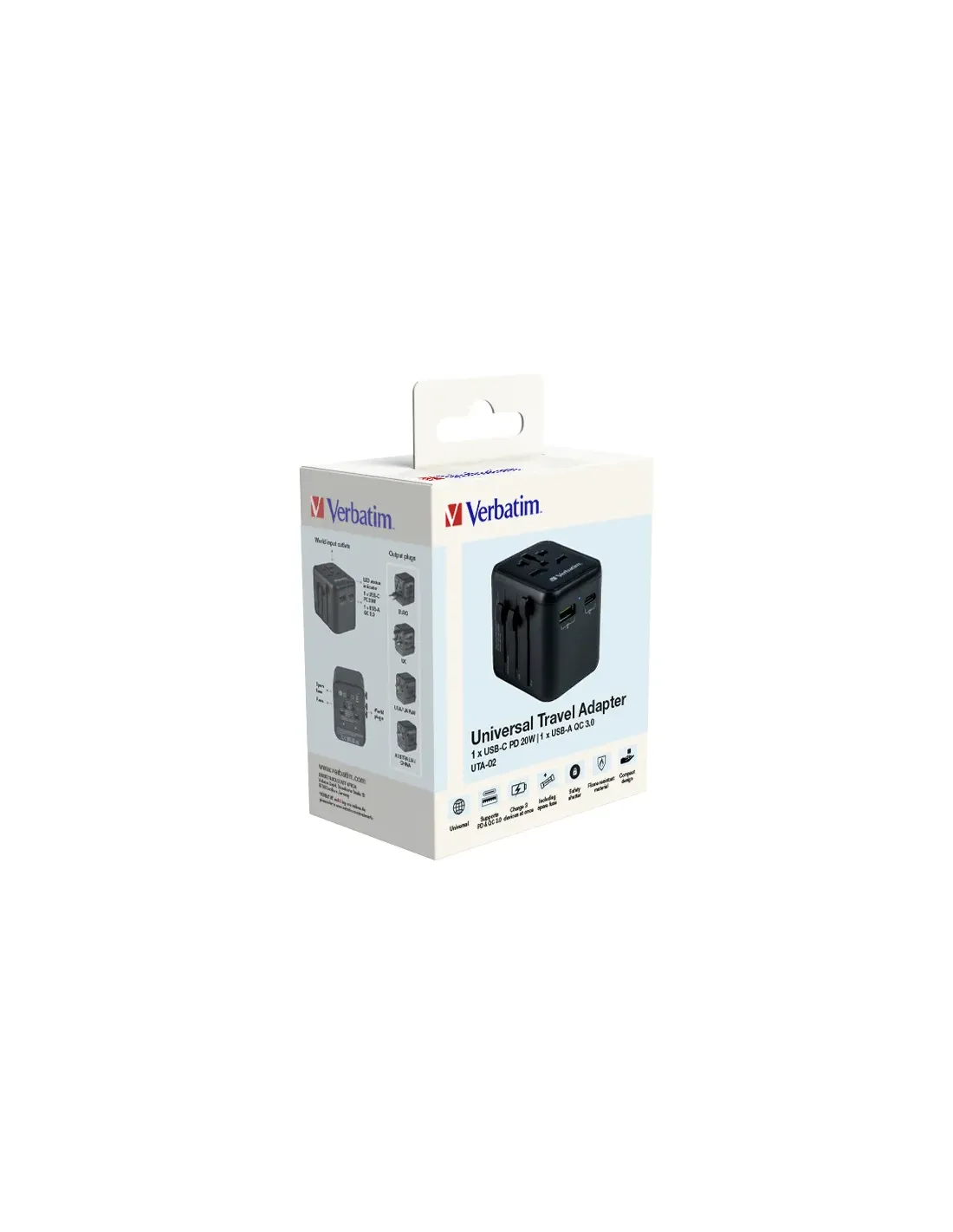 Verbatim 49544, Universal, Universal, Tipo A, Tipo B, Tipo C (Europlug), Tipo E (FR), Tipo F, Tipo G (RU), Tipo I (AU), Tipo J (CH),..., Tipo A, Tipo B, Tipo C, Tipo D (RU), Tipo E (FR), Tipo F, Tipo G (RU), Tipo H (IL), Tipo I (AU),..., 100 - 250 V, 50 - 60 Hz