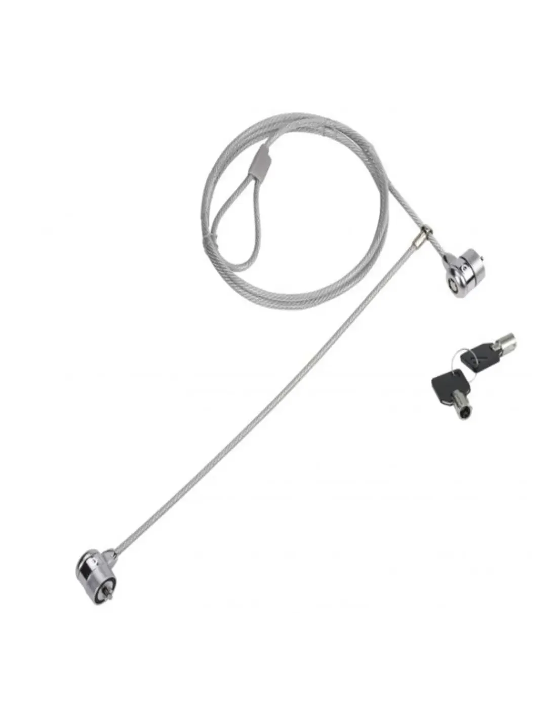 Asegure dos dispositivos sin esfuerzo con el candado para computadora portátil de doble cabezal.El candado con llave para portátiles de doble cabezal protege los portátiles contra robos*. Esta cerradura es compatible con cualquier dispositivo que disponga de conexión de seguridad. Simplementefije el cable de 1,5 metros a un objeto resistente, como una mesa, y conéctelo a sus dos dispositivos. El paquete incluye 2 llaves para mayor comodidad.*Este producto funciona retardando el robo, no previene el robo. Conceptronic no se hace responsable en caso de robo o daño.Cable de 4,0 mm de diámetrocable de 1,5 metrosCabe en todos los portátiles con conexión de seguridadIncluye 2 llaves