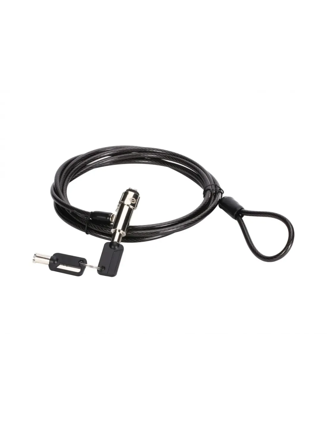 Candado para portátil con llave, ranura Nano Lock, 1,8 mCompatibilidad: Ranura Nano Lock (2,5x6 mm)Cable de 4,5 mm de diámetrocable de 1,8 metrosIncluye 2 llavesCuenta con un cabezal de bloqueo giratorio de 360 ??grados y un cable giratorio para una fácil conexión a su computadora portátilGeneralColor: NegroEAN: 4015867235737Número de modelo: CUSTODIO02BNOtrosAprobación y Cumplimiento: RoHScontenidos del paquete: CUSTODIO02BN, 2 llaves, Guía de instalación rápida multilingeEspecificaciones físicasLongitud del cable : 1,8 mDimensiones (Ancho x Fondo x Alto): 38x20x1800mmPeso del producto (kg): 0,14Especificaciones del SistemaDiámetro (mm): 4.5Tipo de bloqueo: cerradura con llave