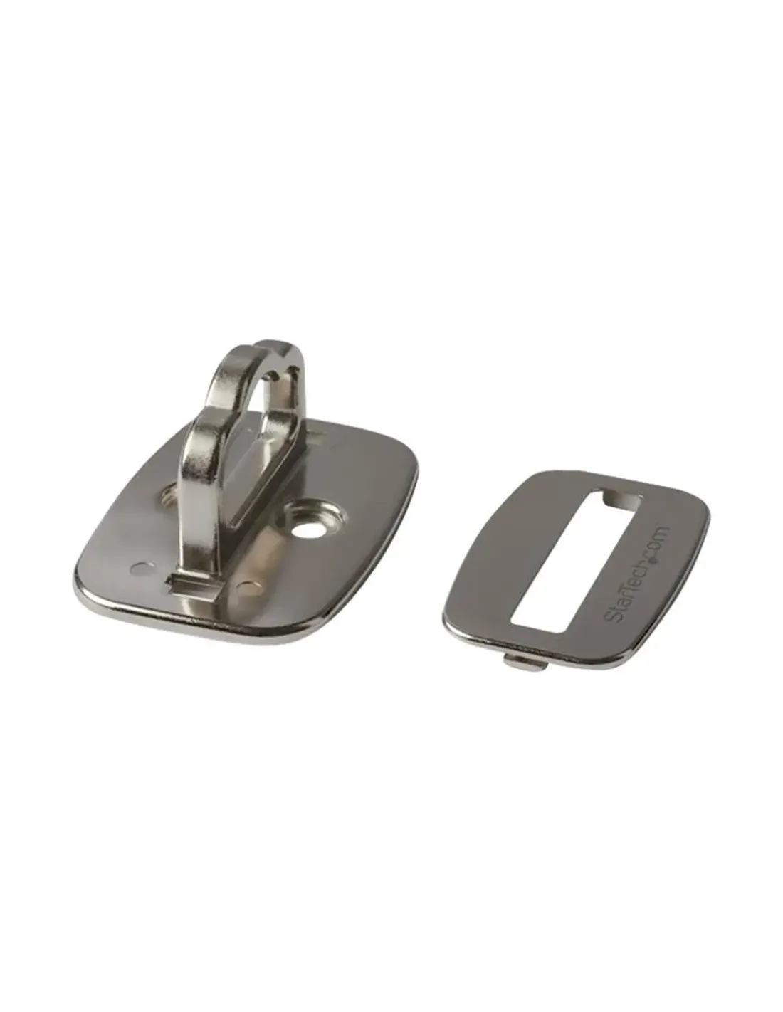 Características del StarTech.com Anclaje para Cable de Seguridad de Ordenador PortátilEl **anclaje de bloqueo StarTech.com** es una solución práctica y segura para quienes desean proteger su portátil u otros dispositivos contra robos en entornos como oficinas, aulas, recepciones o espacios compartidos. Diseñado para fijarse en superficies donde el dispositivo no dispone de ranura de seguridad, este anclaje de acero ofrece una base firme para colocar un candado tipo Kensington (no incluido).Diseño compacto y resistenteFabricado en **acero sólido**, este anclaje está pensado para proporcionar una sujeción duradera sin ocupar demasiado espacio. Su diseño discreto en color **plata** combina fácilmente con el entorno y se adapta a diferentes ubicaciones gracias a sus dimensiones contenidas.Medidas del anclaje: 6,7 x 4,7 x 3,1 cmMaterial: Acero resistentePeso: 100 gFácil instalación sobre superficies planasIncluye todos los elementos necesarios para una instalación segura sobre superficies como escritorios, mostradores o muebles. Puede fijarse mediante **tornillos de madera** (incluidos) para una sujeción permanente, o utilizando adhesivos y preparadores de superficie para una fijación alternativa.Contenido del paquete: placa de cubierta, 2 tornillos, almohadilla abrasiva y toallita con alcoholInstalación sencilla y discretaCompatible con cables de seguridad tipo Kensington (no incluidos)Diseñado para entornos profesionalesEste anclaje es ideal para empresas, centros educativos o cualquier entorno donde se requiera una solución de seguridad física fiable y fácil de implementar, incluso en dispositivos que no tienen ranura para candado. Su ligereza y formato compacto permiten una colocación versátil y eficaz.Solución ideal para portátiles, tablets o dispositivos sin ranura de bloqueoDiseño profesional y minimalistaDimensiones de embalaje: 12 x 2 x 8,5 cm | Peso con embalaje: 101 gOtras especificacionesTipo de producto: Anclaje de bloqueoColor: Plata