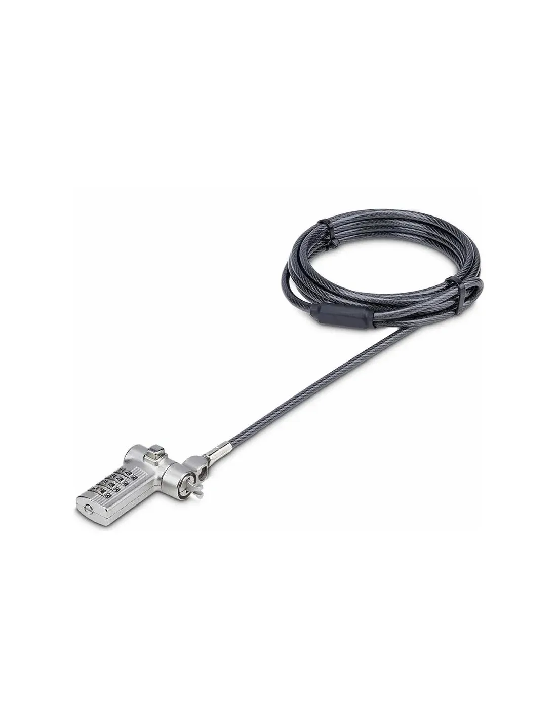 Características del Bloqueo de Cable de Seguridad StarTech.com Universal Laptop Lock 6.6ft (2m)El **StarTech.com Universal Laptop Lock 6.6ft (2m)** es la solución ideal para mantener tu **portátil seguro** y protegido contra robos. Diseñado para ofrecerte una **protección robusta** y **fácil de usar**, este cable de seguridad es compatible con la mayoría de los **notebooks** y **portátiles** que cuentan con ranuras de bloqueo tipo **Noble Wedge**, **Nano** o **K-Slot**. Con un diseño sencillo y una **combinación de bloqueo sin llave**, este dispositivo asegura tus equipos en cualquier entorno.Bloqueo Seguro y FlexibleEste cable de seguridad proporciona una **protección eficiente** gracias a su mecanismo de bloqueo con clave, que asegura tu equipo de manera confiable en lugares públicos o compartidos. El cable de **2 metros de longitud** permite una instalación flexible y fácil de usar, ofreciendo la suficiente libertad para asegurar tu dispositivo en escritorios o superficies grandes.Longitud del cable: 2 mMaterial del cable: Acero trenzado resistenteTipo de bloqueo: Cuña elegante, Nano, T-Bar (compatible con múltiples ranuras)Diseño Compacto y ResistenteCon un **diseño compacto** y robusto, este bloqueo está fabricado en **acero y plástico** de alta calidad para garantizar durabilidad y resistencia. El cuerpo del dispositivo tiene un acabado en **plata y negro**, lo que le da un toque profesional y discreto que se adapta a cualquier entorno de trabajo. Además, su tamaño reducido no ocupará mucho espacio en tu equipo o en el área de trabajo.Material: Acero y plásticoColores: Plata y negroDimensiones: 3.2 cm x 1.4 cmFácil Instalación y UsoEste bloqueo es extremadamente fácil de usar. Con su sistema de **combinación sin llave**, puedes configurar la seguridad sin preocuparte por perder las llaves. Solo necesitas ajustar el código y conectar el cable al dispositivo para proteger tu equipo de posibles robos. La **flexibilidad del cable** permite asegurar tu portátil de forma segura sin complicaciones.Bloqueo sin llave con combinación ajustableFácil de instalar y usarCompatibilidad universal con portátiles que cuenten con ranuras de bloqueoOtras EspecificacionesDimensiones del embalaje: 15 cm x 18 cm x 2 cmPeso del producto: 144 gUso previsto: Bloqueo de portátiles y dispositivos electrónicos con ranura de seguridad
