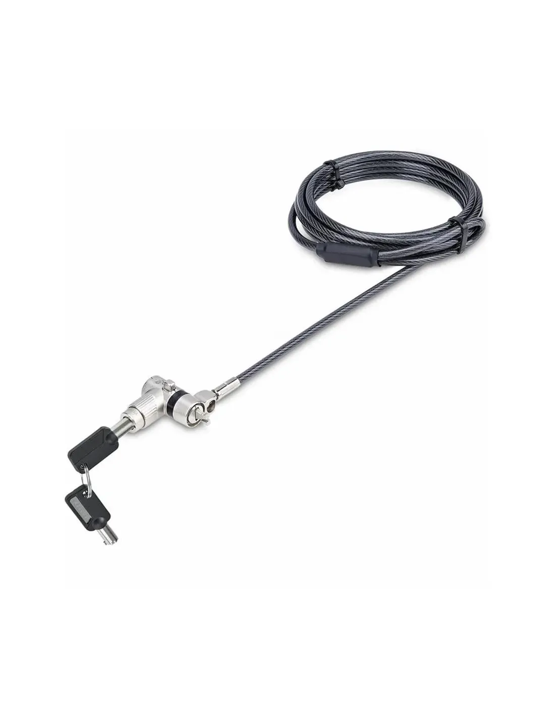 Características del Bloqueo de Cable de Seguridad StarTech.com Universal Laptop Lock 6.6ft (2m)El **Bloqueo de Cable de Seguridad StarTech.com Universal Laptop Lock** es una solución eficaz para proteger tu **portátil** de robos en entornos públicos o de trabajo. Con un diseño robusto y fácil de usar, este candado ofrece una seguridad confiable gracias a su cable de **2 metros de longitud** y un sistema de **bloqueo con llave**. Compatible con **Noble Wedge®, Nano y K-Slot**, este producto es ideal para quienes buscan una protección adicional sin complicaciones.Seguridad confiable para tu portátilEste bloqueo de cable de seguridad ofrece una **protección antirrobo** efectiva para tu portátil, asegurando que esté siempre protegido en lugares públicos, oficinas o cafés. Su **cable de acero de alta resistencia** proporciona una barrera segura contra intentos de robo, y su **método de bloqueo con llave** ofrece mayor tranquilidad al usuario.Cable de seguridad de 2 metros de longitudMaterial de acero y plástico para mayor durabilidadCompatible con los sistemas de bloqueo Noble Wedge®, Nano y T-BarDiseño práctico y funcionalEl bloqueo está diseñado para ser sencillo de usar, permitiendo instalarlo rápidamente y sin complicaciones. Con un **bloqueo de tipo cuña elegante**, **nano y T-Bar**, se adapta a la mayoría de portátiles y dispositivos compatibles. Además, su color **plata y negro** le da un acabado profesional, ideal para cualquier entorno.Dimensiones compactas: 3.2 cm de ancho, 1.4 cm de altoIncluye 2 llaves, 3 separadores de bloqueo y correas de velcroProtección antirrobo con fácil instalación y extracciónPortabilidad y facilidad de usoEl bloqueo de cable es fácil de transportar, con un peso total de solo **144 g**, lo que lo hace adecuado para viajeros frecuentes o quienes necesitan proteger su equipo en movimiento. Su sistema de **cable de 2 metros** te da la flexibilidad de asegurar tu portátil a estructuras fijas sin limitar el rango de movimiento.Ligero, con un peso de 144 gIncluye correas de velcro para una mayor organización y almacenamientoIdeal para uso personal o profesional en cualquier entornoOtras especificacionesMaterial del producto: Acero, plásticoColor: Plata, negroDimensiones del embalaje: 15 cm x 18 cm x 2 cmUso previsto: PortátilMétodo de bloqueo: Clave