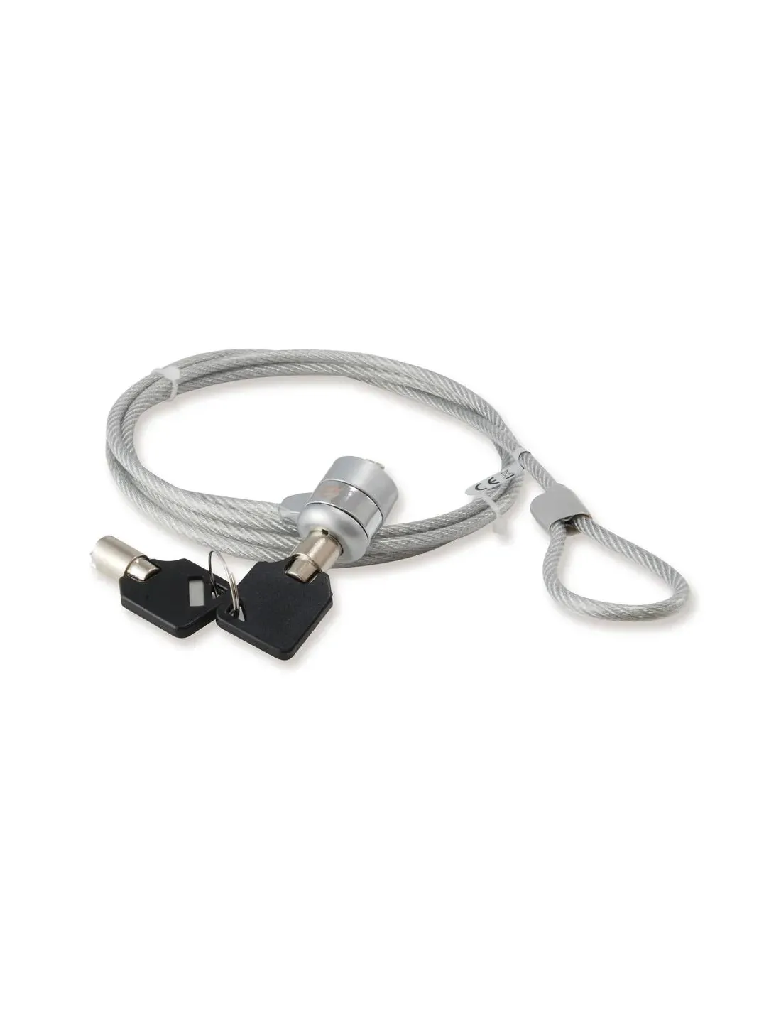 Protege tu portátil contra los robos. El cable se ajusta en todos los portátiles con una conexión de seguridad. Simplemente fije el cable de 1,5 metros a un objeto firme (por ejemplo, una mesa) y conéctaloal ordenador portátil. Incluye 2 llaves.Especificaciones:GeneralConexión segura disponibleCaracterísticasTipo de cable: RectoTipo de cierre: Cierre por llavePeso y DimensionesLargo (en mm): 1500