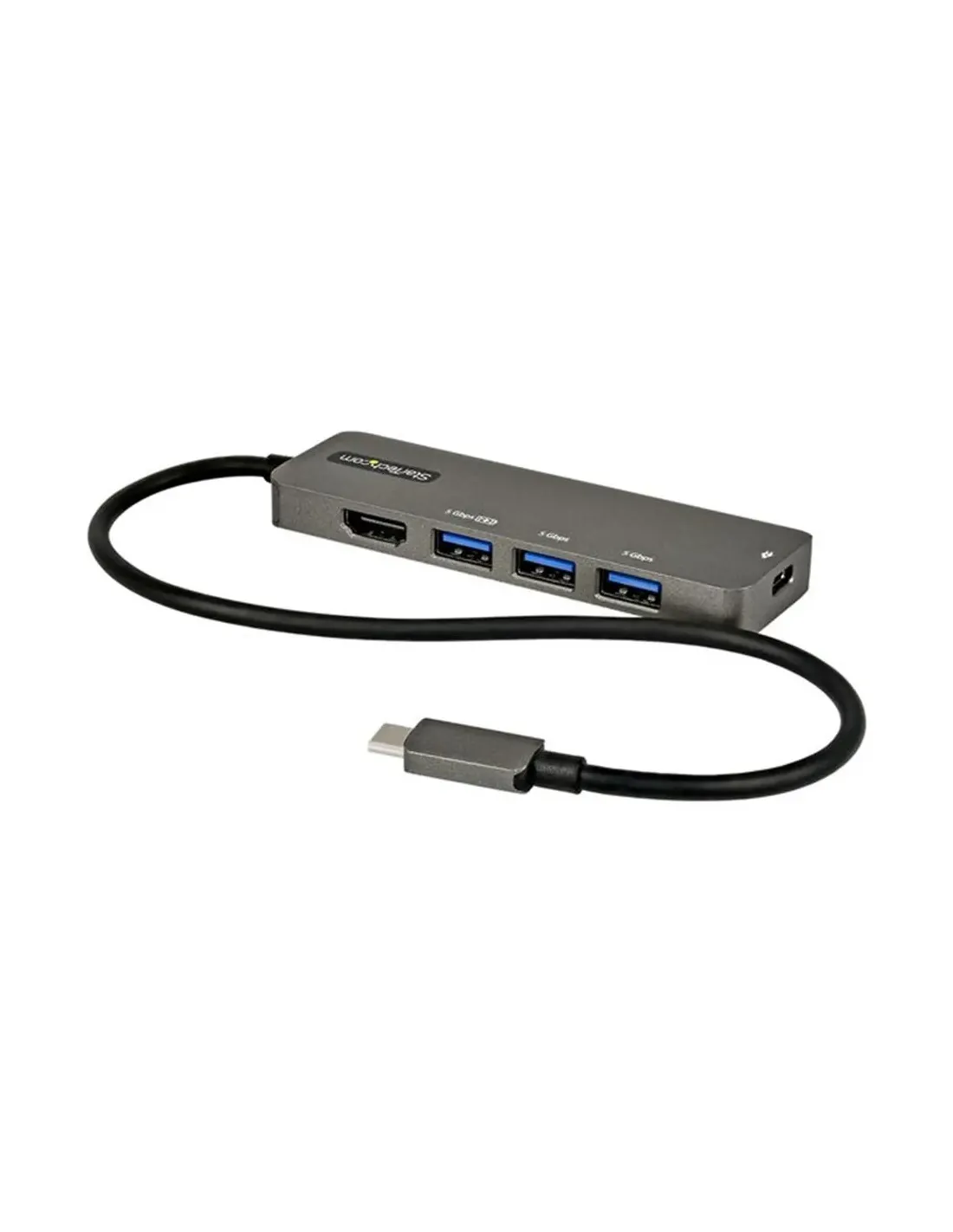 Características de la StarTech.com Adaptador Multipuertos USB-C DKT31CSDHPD3La estación de conexión USB-C StarTech.com DKT31CSDHPD3 es una solución compacta y versátil pensada para ampliar la conectividad de portátiles, tablets y dispositivos compatibles con USB-C. Ideal para entornos profesionales, teletrabajo o movilidad, este mini docking station permite conectar múltiples periféricos, red cableada y pantallas externas desde un solo puerto, manteniendo al mismo tiempo la carga del dispositivo gracias a su Power Delivery de hasta 100W.Expansión completa en un formato compactoEste hub multipuerto ofrece una gran variedad de conexiones esenciales en un diseño ligero y fácil de transportar. Es perfecto para usuarios que necesitan ampliar rápidamente las capacidades de su equipo sin renunciar a la portabilidad.2 x USB 3.1 Gen 2 Tipo A (hasta 10Gbps)1 x USB-C con carga rápida1 x USB-C con Power Delivery de hasta 100W (solo alimentación)1 x HDMI 2.0 (salida de vídeo)1 x Puerto Ethernet RJ-45 Gigabit1 x Lector de tarjetas SD / MMCSalida de vídeo 4K Ultra HDDisfruta de una calidad de imagen nítida y fluida gracias a su salida HDMI compatible con resoluciones 4K a 60Hz. Es ideal para presentaciones, trabajo con contenido multimedia o configuraciones de escritorio extendido.Resolución máxima: 4096 x 2160 a 60 HzCompatible con HDMI 2.0Soporte para HDR10Modo DisplayPort Alt ModeCarga simultánea con Power DeliveryGracias a la tecnología USB Power Delivery 3.0, puedes alimentar tu dispositivo mientras utilizas el resto de puertos del hub. Esto lo convierte en una herramienta clave para estaciones de trabajo modernas.Potencia de paso de hasta 100WPuerto USB-C dedicado solo a alimentaciónCompatible con carga rápidaConectividad de red estable y rápidaIntegra un puerto Gigabit Ethernet que proporciona una conexión de red más estable y segura que el WiFi, ideal para entornos profesionales o transferencias de datos críticas.Velocidades: 10/100/1000 MbpsCompatible con IEEE 802.3, 802.3u y 802.3abSoporte de dúplex completoDiseño práctico y compatibilidad ampliaSu diseño compacto en color gris espacio y cable USB-C integrado facilitan su uso diario y transporte. Además, es compatible con una amplia gama de sistemas operativos, lo que garantiza una integración sencilla en cualquier entorno.Dimensiones: 14.2 x 8.2 x 2.9 cmPeso: 150 gCable USB-C integrado de 25 cmCompatible con Windows, macOS, Android, Chrome OS e iPadOSFiabilidad y estándares profesionalesEste adaptador está diseñado para ofrecer un rendimiento fiable y seguro, cumpliendo con los principales estándares del sector y ofreciendo funciones avanzadas para entornos profesionales.Chipset Parade PS186Soporte PXE (arranque por red)Cumple con FCC, RoHS, WEEE, RCMCompatible con DisplayPort 1.2 y 1.4Garantía limitada de 3 años