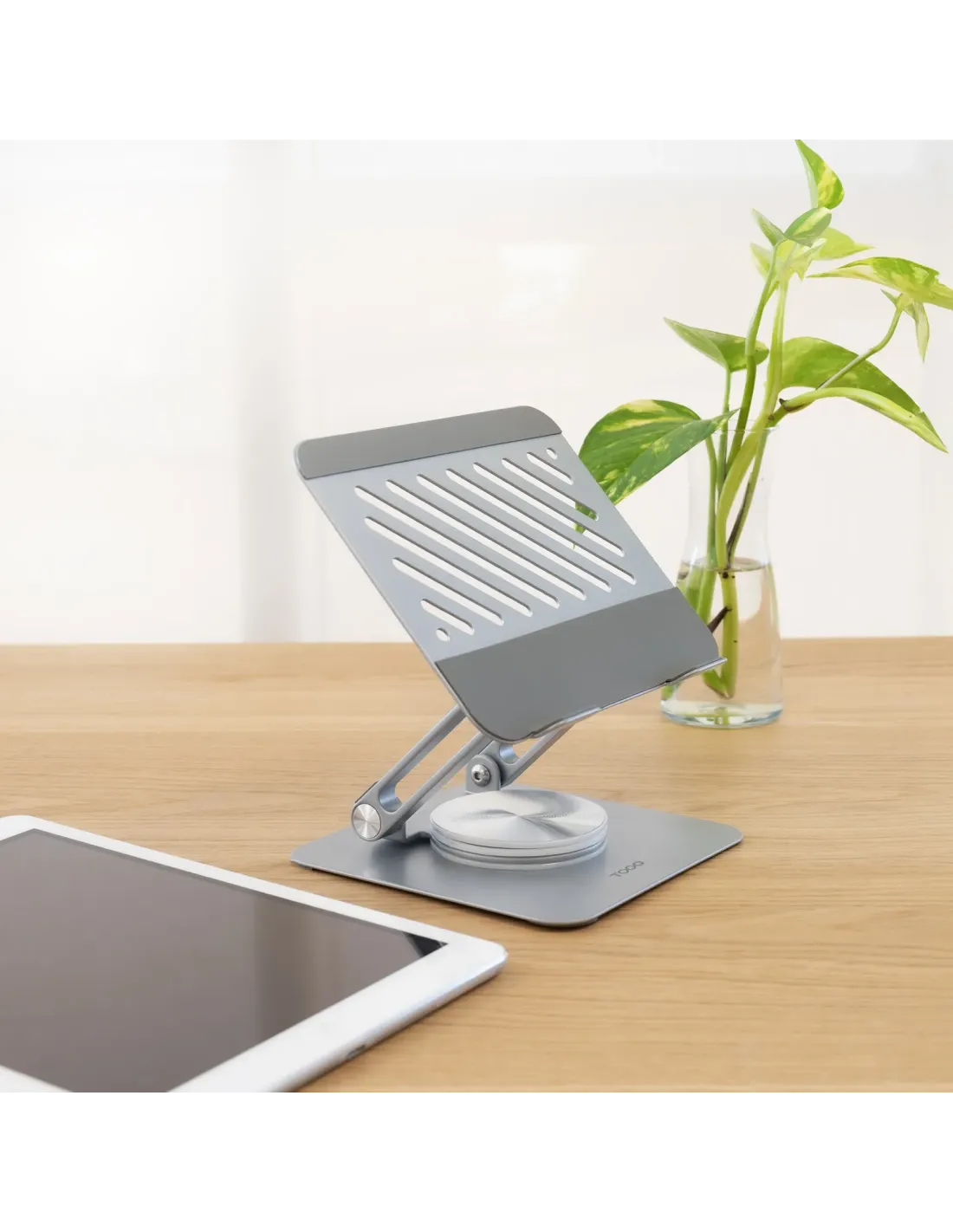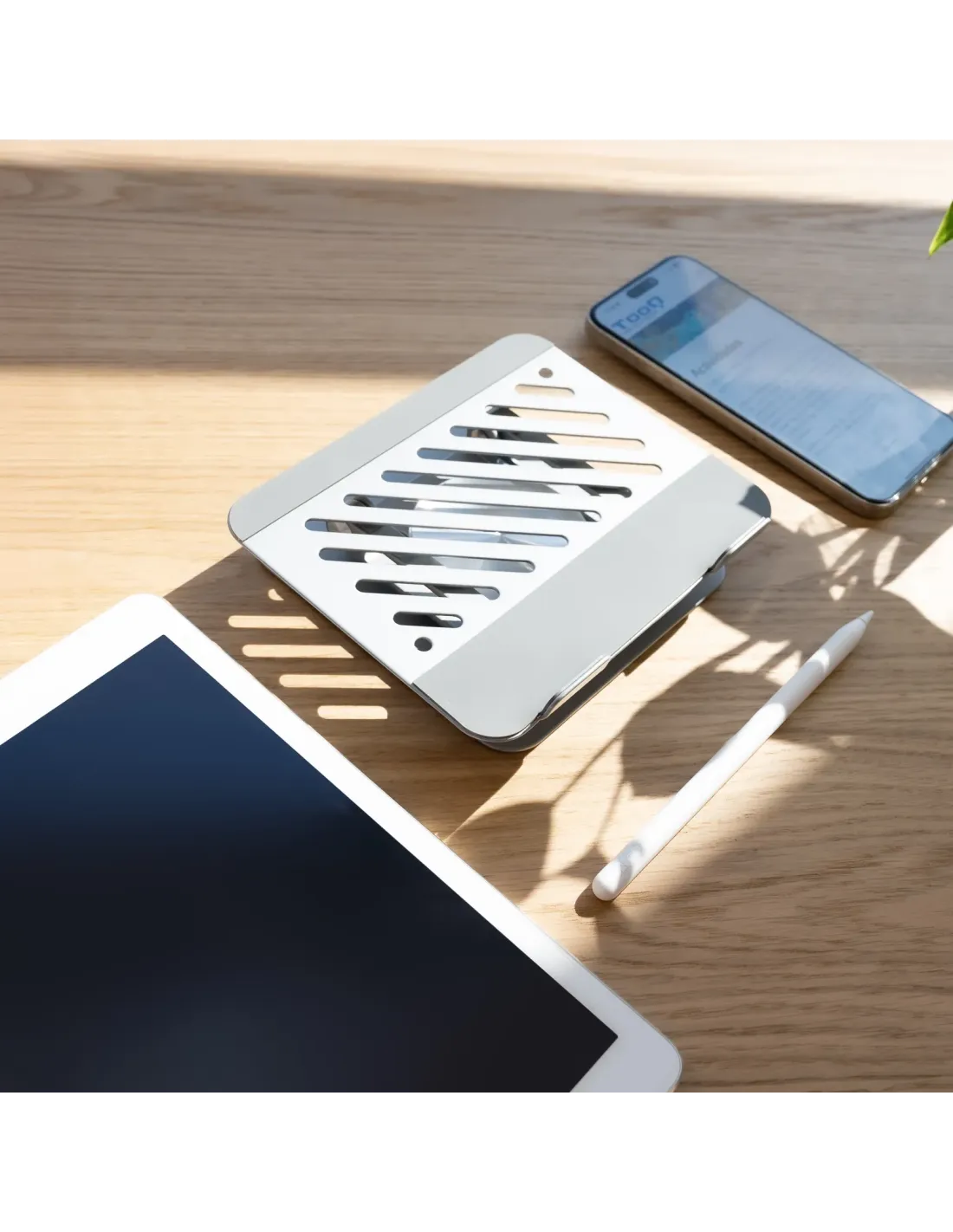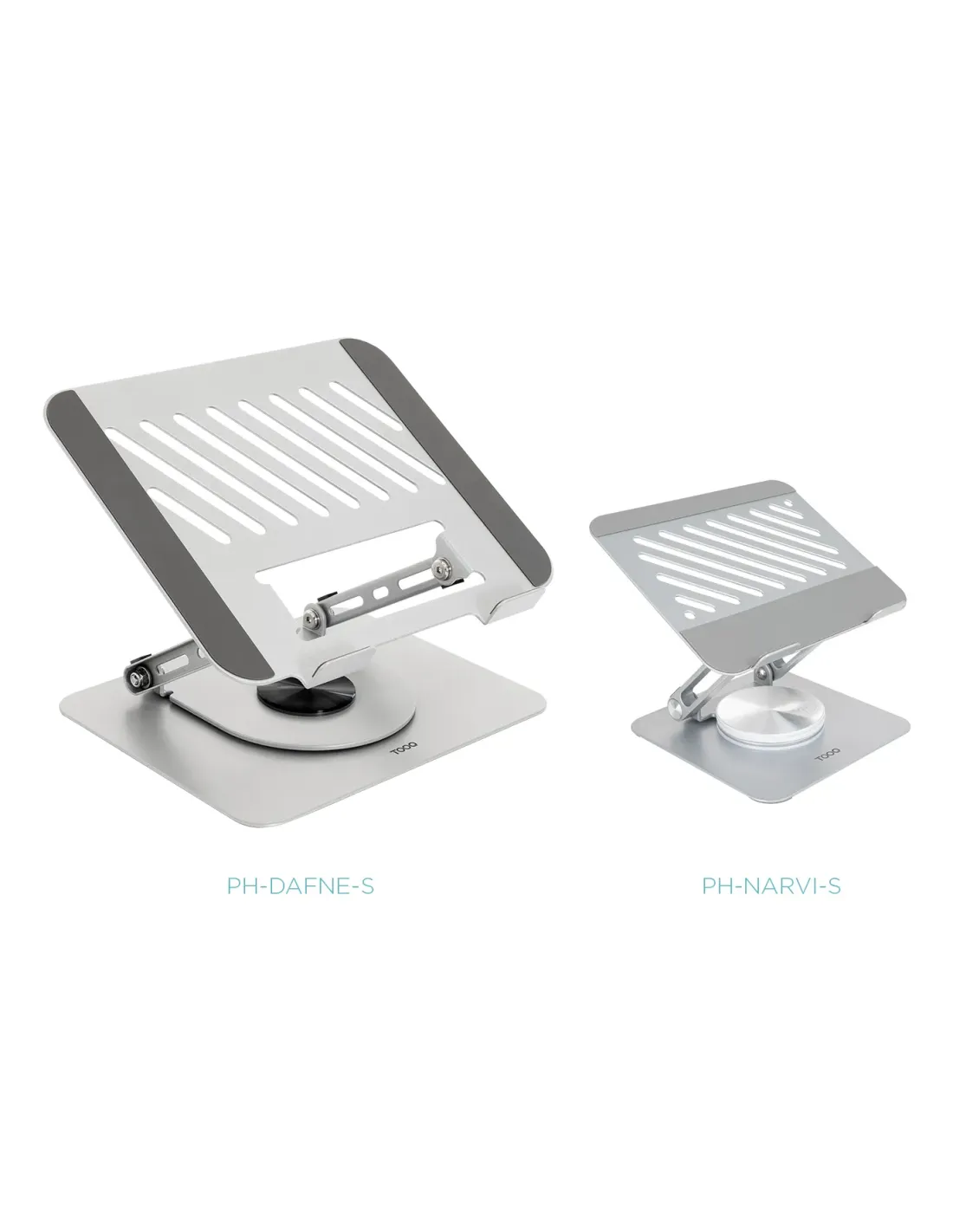 TooQ Soporte de Sobremesa con rotación 360° y ajustable para dispositivos de hasta 13”, Color Plata