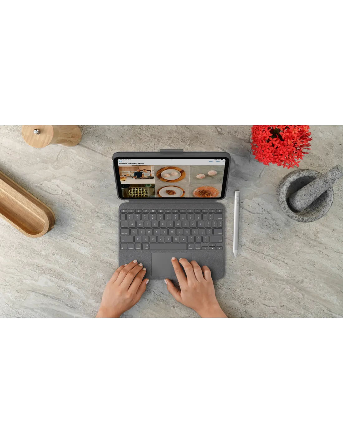 Logitech 920-011439, QWERTY, Español, Touchpad, 1,8 cm, 1 mm, Apple