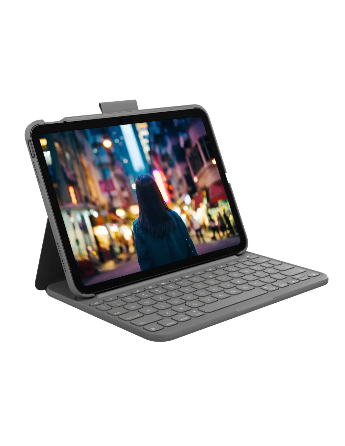 Logitech Estuche de teclado/cubierta Logitech Slim Folio (Folio) Apple, Logitech iPad (10a Generación) Tableta - Gris Oxford - Resistencia a Golpes, Resistencia a arañazos, Resistente a las Raspaduras, Resistente al agua - Tela, Plástico Body - 186,7 mm Altura x 253 mm Ancho x 20mm Profundidad