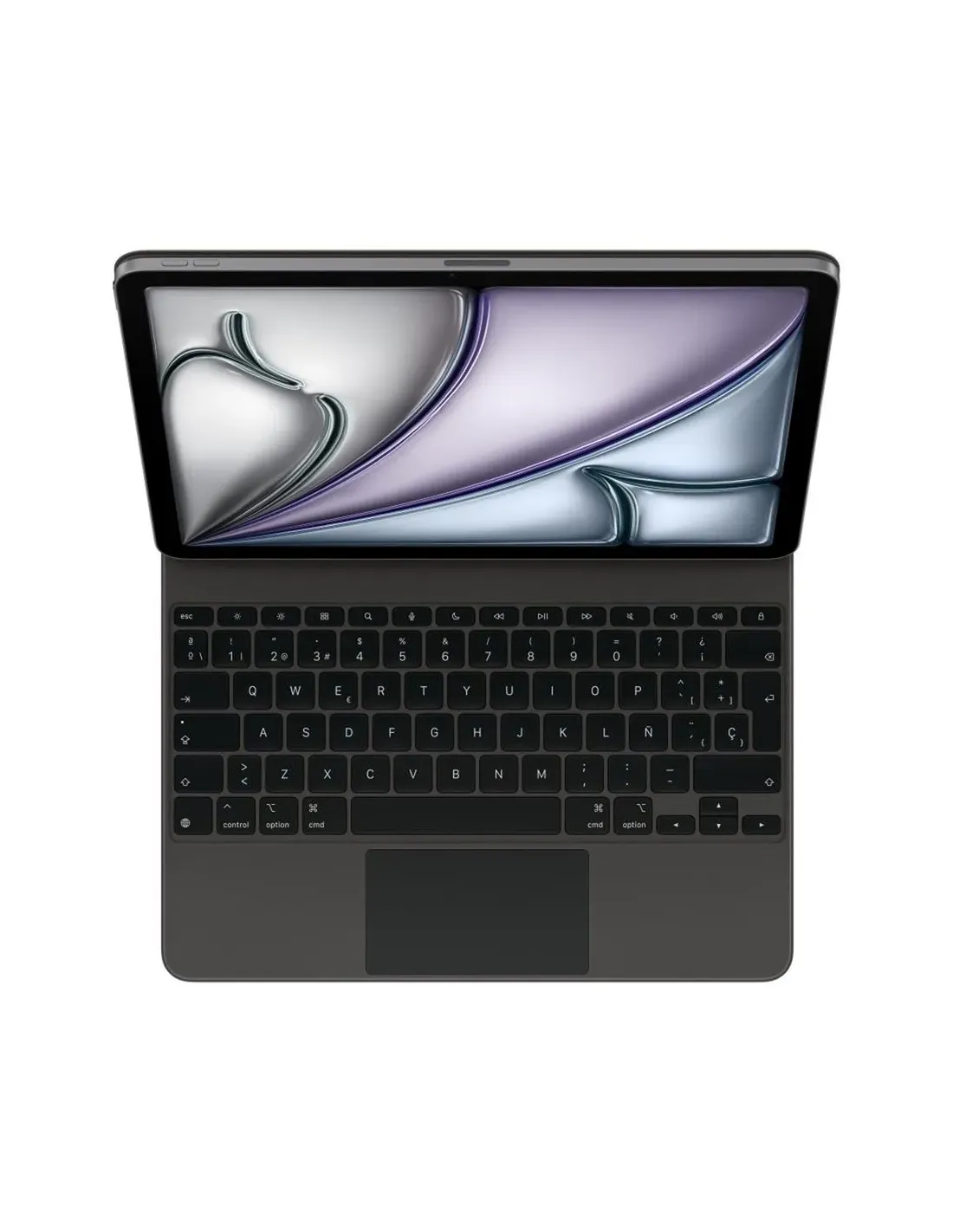 Características del Apple Magic Keyboard para iPad Air 13" (M3/M2) - Español - NegroEl Apple Magic Keyboard para iPad Air de 13 pulgadas está diseñado para ofrecer una experiencia de escritura cómoda, precisa y totalmente integrada con tu dispositivo. Compatible con los modelos iPad Air de 13" con chip M3 y M2, este teclado convierte tu iPad en una herramienta de productividad avanzada, ideal para estudiantes, profesionales y usuarios que trabajan en movilidad. Su diseño flotante, trackpad integrado y conectividad inalámbrica lo hacen el accesorio perfecto para potenciar tu flujo de trabajo.Diseño elegante con escritura de alta precisiónEl teclado utiliza un mecanismo de tijera con una distancia de recorrido de solo 1 mm, lo que garantiza una experiencia de escritura silenciosa, rápida y precisa. Además, al contar con distribución QWERTY en español, se adapta perfectamente al uso diario.Distribución QWERTY en españolMecanismo de tijera con 1 mm de recorridoTeclas retroiluminadas para uso con poca luzTrackpad integrado y control totalIncorpora un trackpad de gran precisión que permite aprovechar al máximo las funciones de gestos y el sistema operativo del iPad. Navega, selecciona y edita con facilidad sin quitar las manos del teclado.Trackpad multi-touch integradoCompatibilidad con gestos de iPadOSControl preciso para tareas de productividad o ediciónDiseño flotante y protección incorporadaEl diseño flotante con ajuste magnético permite colocar el iPad en el ángulo ideal para escribir o visualizar contenido. También actúa como funda protectora, protegiendo la parte frontal y trasera del dispositivo cuando no está en uso.Sistema flotante con ajuste magnéticoCubre y protege ambos lados del iPadDiseño compacto y elegante en color negroConectividad inalámbrica y carga USB-CEl Magic Keyboard se conecta inalámbricamente al iPad, lo que permite un uso libre de cables. Además, incluye un puerto USB-C adicional para carga, dejando libre el conector principal del iPad para otros accesorios.Conexión inalámbrica automáticaPuerto USB-C para carga pasanteSin necesidad de baterías ni emparejamiento manualCompatibilidad específica con iPad Air 13"Este modelo ha sido diseñado específicamente para los iPad Air de 13 pulgadas con chip M3 o M2, ofreciendo un ajuste perfecto, soporte completo del sistema operativo y todas las funciones del teclado y trackpad.Compatible con iPad Air 13" (M3)Compatible con iPad Air 13" (M2)Soporte completo de iPadOSOtras especificacionesTeclas multimedia: SíTeclado numérico: NoTeclado flexible: NoAdaptador de corriente incluido: No