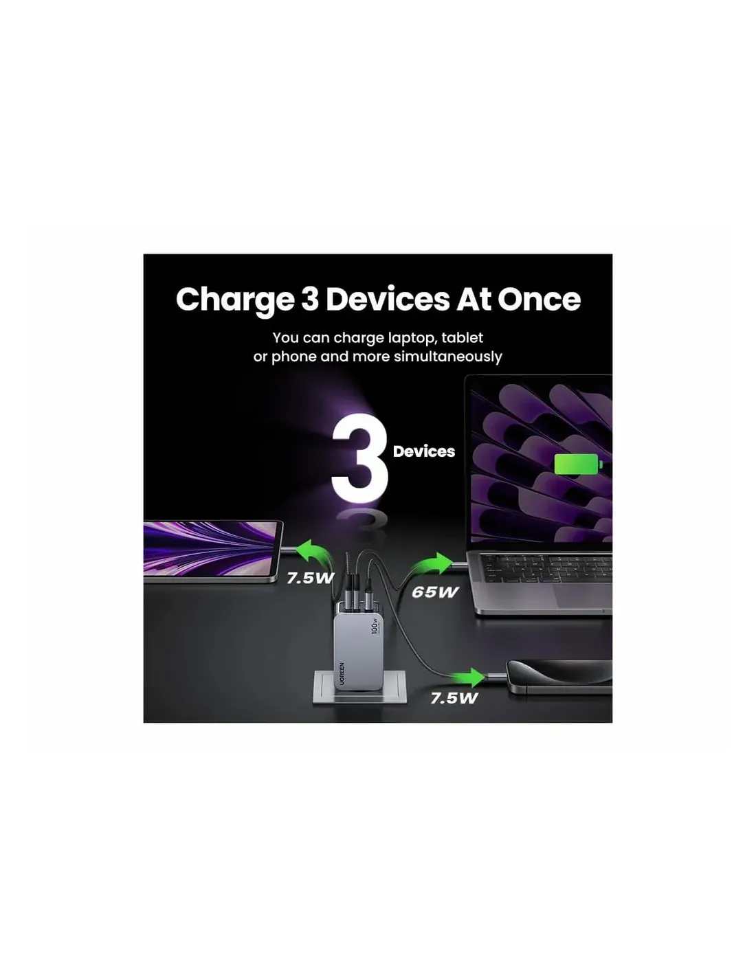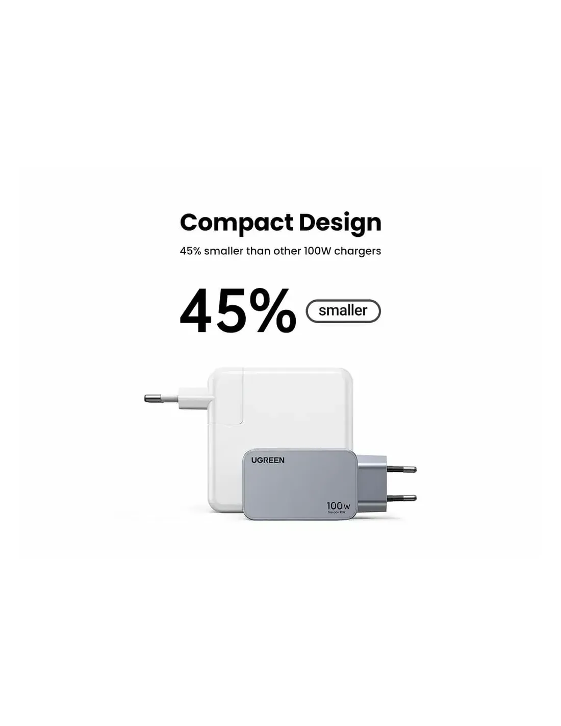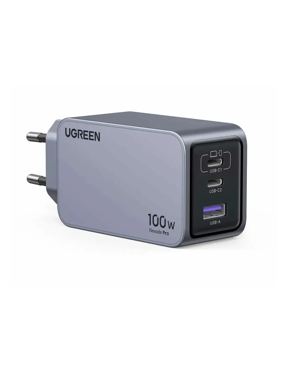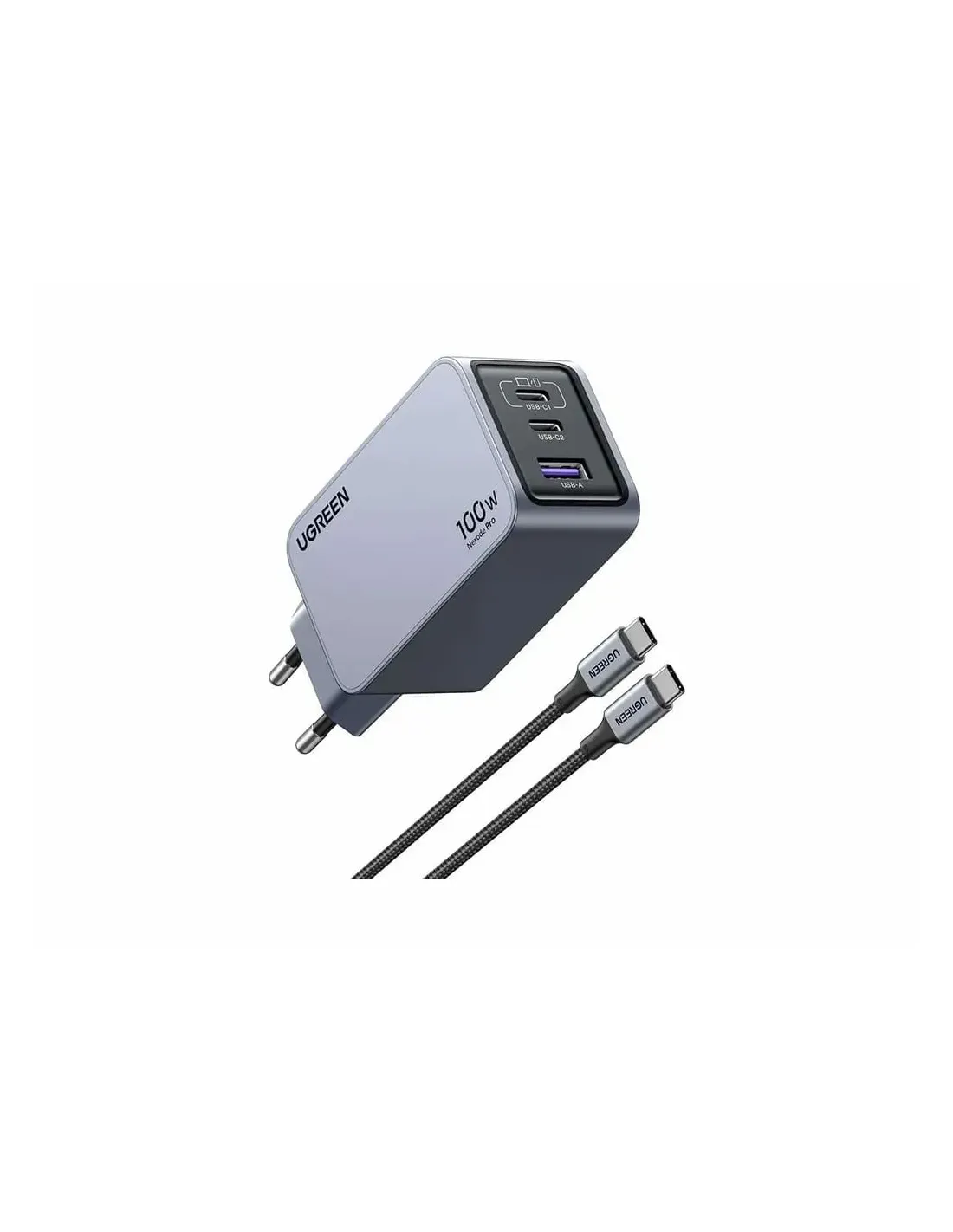 Ugreen Nexode Pro EU 3-Port GaN PD Fast Charger With USB-C Cable, Interior, Corriente alterna, Negro, Gris