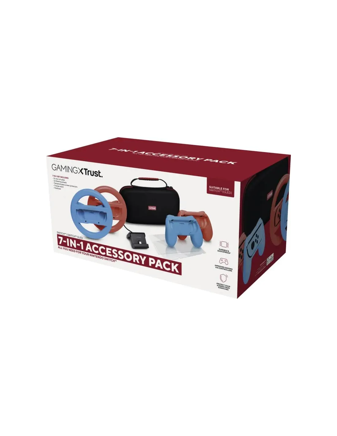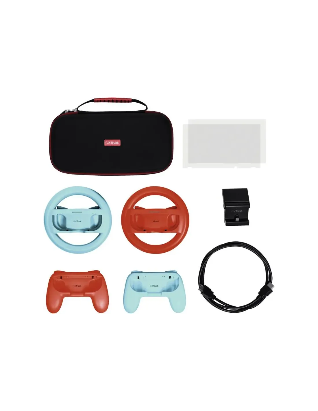 Pack Gaming Trust Gaming GXT 1249/ Estuche rígido + 2 Joy-Con + 2 Volantes + Cristal Templado para Switch + Soporte de Carga