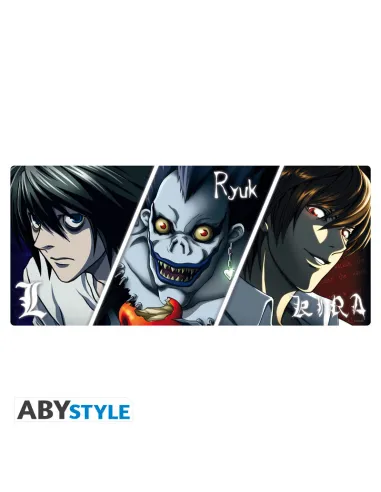 Por un lado tenemos a L, el mejor detective del mundo, capaz de resolver cualquier crimen gracias a su intelecto superior. Por otro lado, ¡Kira, la otra cara de la Justicia! Creativo en su forma de acabar con los criminales y siempre un paso por delante, ¡Kira es imparable! Y en medio, Ryuk, el dios de la muerte, observa desde las sombras, disfrutando del espectáculo. Disfruta también de este duelo con esta preciosa alfombrilla de ratón XXL para juegos de Death Note de ABYstyle.