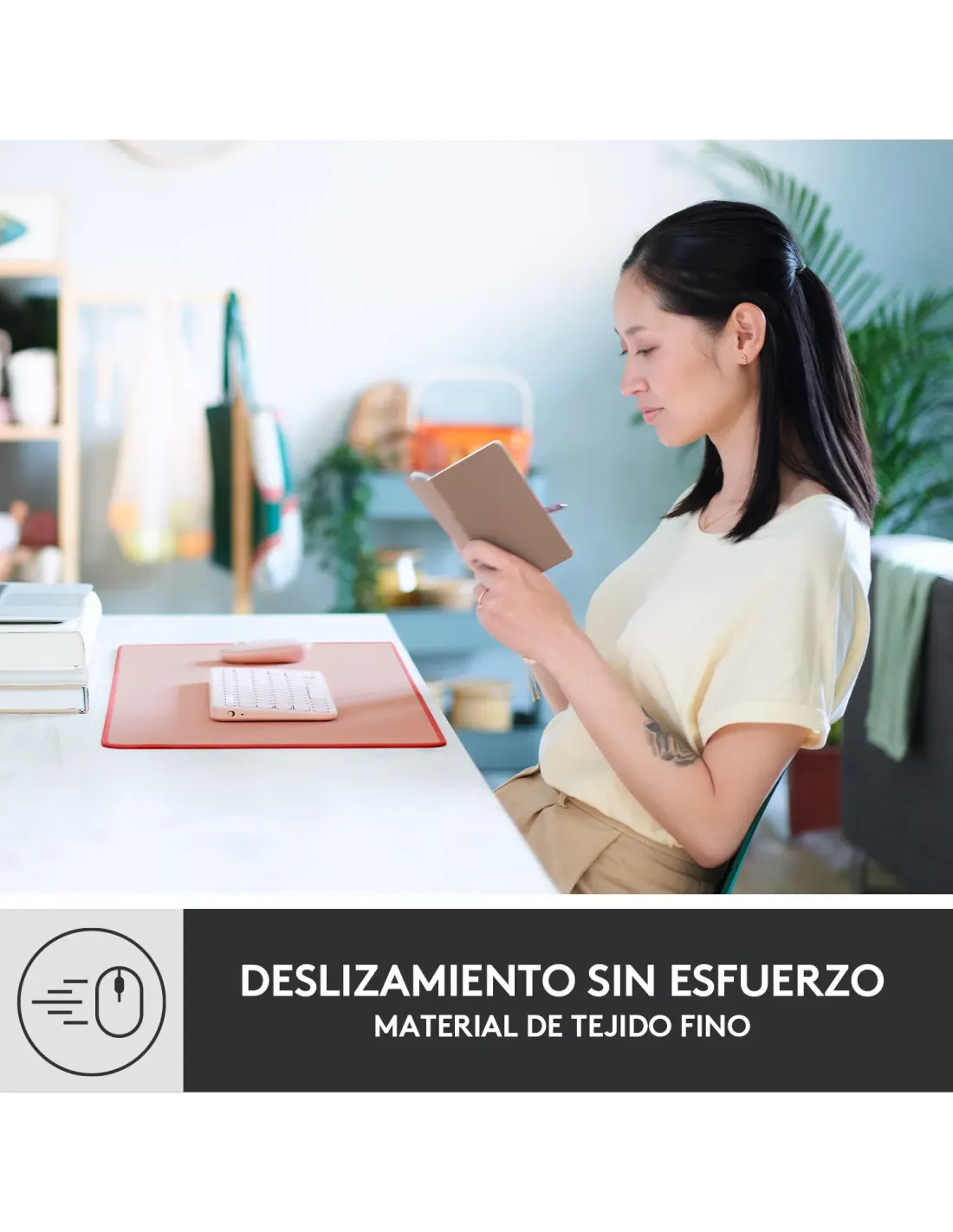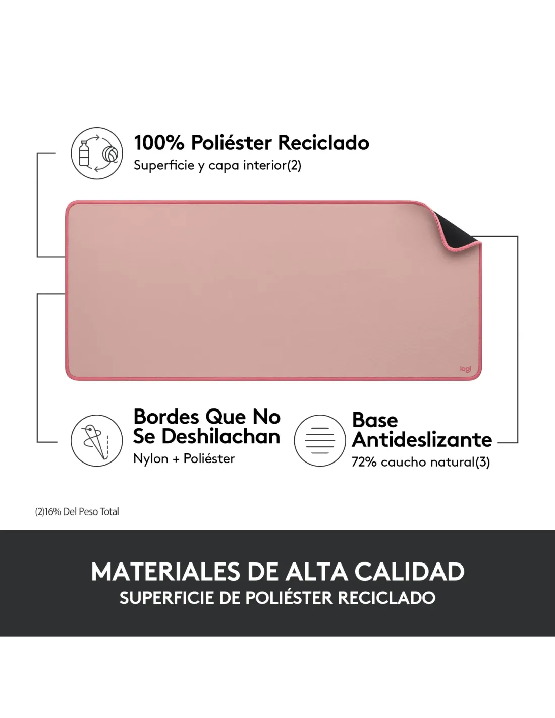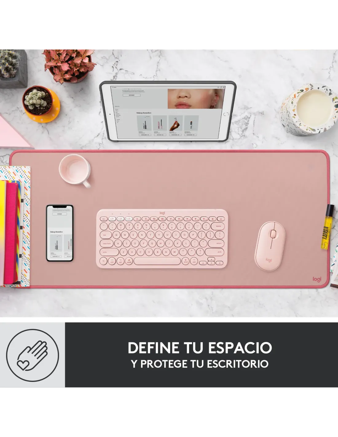 Logitech Desk Mat, Rosa, Monocromo, Nylon, Poliéster, Caucho, Base antiderrapante