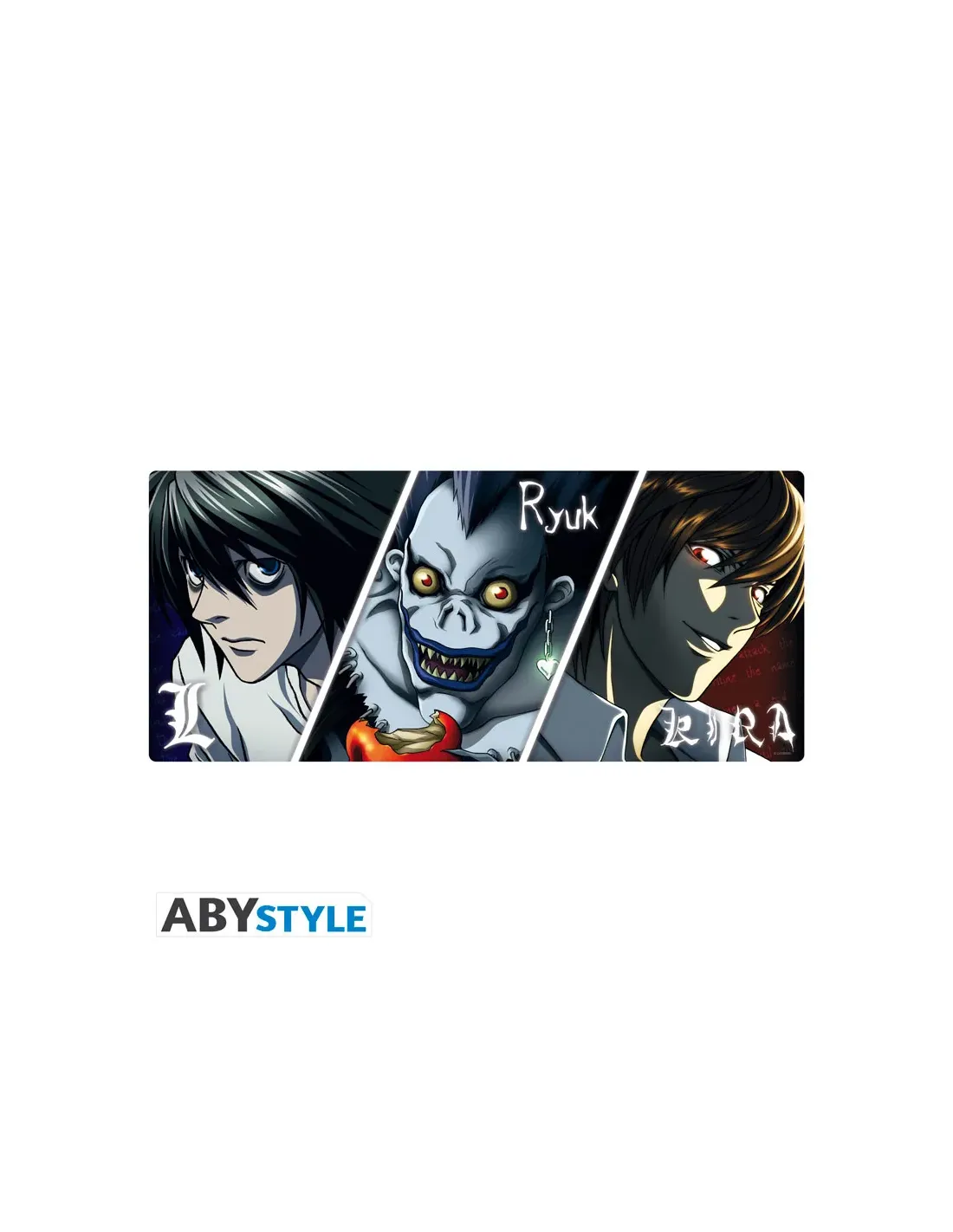 Características de la Alfombrilla ABYstyle XXL Death Note TríadaSumérgete en el intenso duelo entre L, Kira y Ryuk con esta espectacular **alfombrilla de ratón gaming XXL** inspirada en el universo de **Death Note**. Diseñada por ABYstyle y con licencia oficial, esta alfombrilla es perfecta para fans del anime que buscan un accesorio funcional, resistente y con un diseño impactante. Su gran formato y materiales de calidad la hacen ideal tanto para videojuegos como para uso profesional.Diseño oficial para verdaderos fans de Death NoteLa ilustración representa a los tres pilares del anime: **L, Kira y Ryuk**, capturando la tensión y el equilibrio entre justicia, ingenio y caos. Su acabado visual convierte cualquier escritorio en una zona de combate digno del shinigami.Diseño con licencia oficial ABYstyleGráfico en alta definición de la tríada principalAcabado resistente al desgasteSuperficie XXL y materiales de alta calidadGracias a su **formato de 90 x 40 cm**, ofrece espacio suficiente para teclado y ratón, mejorando la comodidad en sesiones largas de juego o trabajo. Además, su base de goma y bordes reforzados aseguran estabilidad y durabilidad.Dimensiones: 90 cm x 40 cmGrosor de 3 mm para mayor comodidadBase de goma antideslizanteBordes con doble costura antideshilachadoPrecisión para todo tipo de ratonesCompatible con **ratones ópticos y láser**, esta alfombrilla garantiza un deslizamiento fluido y controlado, ideal para juegos de alta precisión o tareas de diseño.Superficie optimizada para sensores modernosIdeal para gaming, diseño o trabajo diarioDeslizamiento suave y controlado