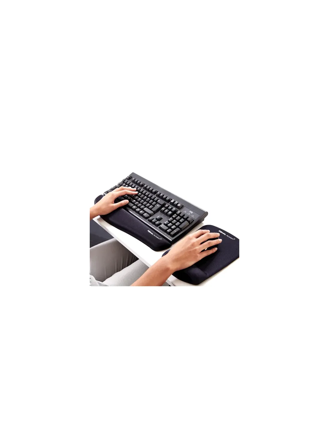 Fellowes 9252003. Ancho: 184 mm, Profundidad: 238 mm. Color del producto: Negro, Coloración de superficie: Monótono, Material: Tela, Espuma, Descansa muñecas, Base antiderrapante