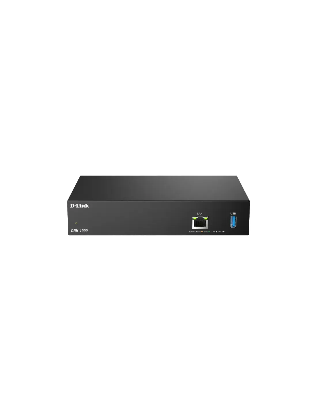 Marca D-Link Modelo DNH-1000 Interfaces Rendimiento - 1 x Ethernet 2,5 GbE - 1 x USB 3.0 Especificaciones Características del sistema - Sistema de gestión: Nuclias Connect - Escalabilidad: hasta 500 dispositivos gestionados - Tipo de red: pequeñas y medianas redes - Dispositivos gestionados: puntos de acceso EAP y switches Nuclias Connect (agregación y acceso) - Indicadores LED: alimentación/estado y LAN Entorno - Temperatura operativa: 0 °C a 40 °C - Temperatura de almacenamiento: -20 °C a 70 °C - Humedad operativa: 10 %–90 % sin condensación - Humedad de almacenamiento: 5 %–95 % sin condensación Alimentación - Fuente externa 12 V / 2 A - Entrada CA: 100–240 V - Consumo máximo: 24 W Dimensiones y peso - 190 × 120 × 38 mm - 640 g Fecha de revisión 26-01-2026 por IS