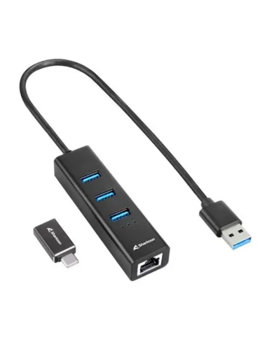 Hub usb sharkoon 3 x usb 3.2 gen 1 + rj45 aluminio negro + adaptador usb tipo c