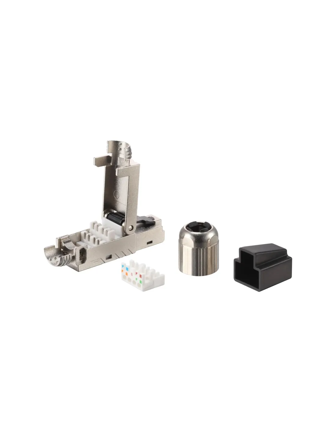 El conector RJ45 sin herramientas Cat 8.1 es un conector de red de alto rendimiento diseñado para cables Ethernet Cat 8.1. Ofrece un proceso de instalación fácil de usar y sin herramientas, lo que facilita tanto alos profesionales como a los entusiastas del bricolaje configurar conexiones Ethernet confiables y de alta velocidad. Este enchufe está diseñado para admitir velocidades de transferencia de datos de hasta 25Gbps, lo que lo hace ideal para aplicaciones exigentes como transmisión de video 4K, juegos en línea y tareas con uso intensivo de datos. Su construcción robusta garantiza durabilidad y conexiones seguras,mientras que su compatibilidad con cables Cat 8.1 garantiza un rendimiento óptimo para las necesidades de red preparadas para el futuro, lo que lo convierte en la mejor opción para configuraciones de redavanzadas.Aleación de zinc BlindadoConector sin herramientasPara cable Cat.6A, Cat.7 o Cat.8 con 22~26AWGPara cable redondoTanto para conductores sólidos como trenzadosUnidad de venta: 5 unidades/paquete