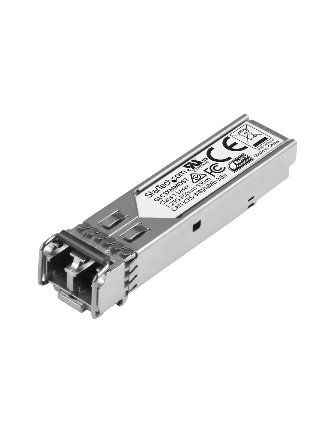 Características del StarTech.com Módulo Transceptor SFP Compatible con Cisco GLC-SX-MMDEl módulo transceptor SFP de StarTech.com es una solución de alta fiabilidad diseñada para integrarse en redes compatibles con Cisco que requieren rendimiento Gigabit por fibra óptica multimodo. Ideal para entornos profesionales que demandan una transmisión de datos rápida y estable a corta distancia, este modelo está totalmente alineado con el estándar Cisco GLC-SX-MMD, ofreciendo una alternativa rentable y certificada. Su diseño compacto y su compatibilidad con funciones avanzadas como Digital Diagnostics Monitoring (DDM) lo convierten en una opción eficaz para centros de datos, infraestructuras LAN o ampliaciones de red.Alto rendimiento para redes Gigabit de corto alcanceEste módulo SFP está optimizado para transmisiones de hasta 550 metros sobre fibra multimodo, gracias a su funcionamiento bajo la tecnología 1000Base-SX y una longitud de onda de 850 nm. Garantiza una conectividad de alta velocidad en modo dúplex completo con velocidades de hasta 1.25 Gbps.Velocidad de transmisión: 1.25 GbpsAlcance máximo: 550 metros (fibra multimodo)Longitud de onda: 850 nmCompatibilidad garantizada y diagnóstico digitalEl transceptor cuenta con funciones de monitorización de diagnóstico digital (DDM) y soporte para Digital Optical Monitoring (DOM), permitiendo a los administradores de red realizar seguimientos en tiempo real del estado del enlace óptico. Además, cumple con los estándares IEEE 802.3z y está fabricado bajo normativas de calidad como RoHS, UL y FCC, lo que garantiza una operación segura y estable.Compatible con Cisco GLC-SX-MMDFunciones DDM y DOM integradasCertificaciones: RoHS, MSA, UL, FCCDiseño compacto y garantía de por vidaGracias a su formato mini-GBIC (Small Form-Factor Pluggable), este transceptor se integra fácilmente en switches, routers o servidores compatibles. Está construido con una carcasa metálica en color plata que favorece la disipación del calor, soporta temperaturas de funcionamiento de hasta 70 °C y cuenta con garantía limitada de por vida del fabricante.Formato: Módulo de inserción SFPRango de temperatura: 0 °C a 70 °CGarantía limitada de por vidaOtras especificacionesInterfaz: 1 x LC hembra (fibra multimodo)Protocolo soportado: 1GbETecnología de conectividad: CableadoDimensiones: 5.66 cm (prof.) x 1.37 cm (ancho) x 1.25 cm (alto)Peso: 28 gHumedad de funcionamiento: 5% - 95%
