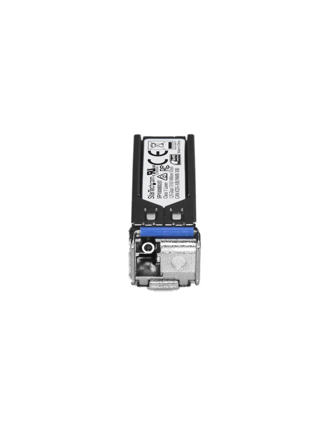 Características del StarTech.com Módulo Transceptor SFP de Fibra LC Monomodo 1000Base-BXEl **módulo transceptor SFP de StarTech.com** está diseñado para ofrecer una conexión de red por fibra óptica de alta velocidad, segura y fiable. Compatible con el estándar **MSA** y con funciones avanzadas como **Digital Diagnostics Monitoring (DDM)** y **Control óptico digital (DOM)**, este transceptor es ideal para entornos empresariales que requieren conectividad Gigabit estable en largas distancias. Su diseño compacto y duradero lo hace perfecto para switches, routers o dispositivos con puertos SFP.Conectividad Gigabit por fibra monomodoEste módulo SFP permite establecer una conexión de **hasta 10 km** de alcance mediante fibra monomodo, ofreciendo una solución eficiente para redes distribuidas o centros de datos. Utiliza una sola fibra (BX) con conector **LC** y opera a velocidades de **1 Gbps**, cumpliendo con el estándar **1000Base-BX**.Interfaz: 1 x Ethernet 1000Base-BX - modo simple LCVelocidad de transferencia: 1 GbpsDistancia máxima: hasta 10 kmCompatible con monitorización digital y normas MSAGracias a su soporte para **DDM/DOM**, permite la supervisión en tiempo real de parámetros críticos como la potencia de señal, la temperatura o el voltaje. Esto facilita la gestión proactiva de la red y mejora la fiabilidad operativa. Además, cumple con especificaciones **MSA** para asegurar una alta compatibilidad con equipos de red de diferentes fabricantes.Compatible con DDM (Digital Diagnostics Monitoring)Soporte para DOM (Digital Optical Monitoring)Cumple con MSA, IEEE 802.3z, RoHS, FCC, WEEEDiseño compacto y eficienteCon un formato de módulo de inserción y acabados en color plata, este transceptor presenta un diseño ligero y funcional que se adapta perfectamente a cualquier entorno de red profesional.Factor de forma: Módulo de inserción SFPDimensiones: 5.84 cm (profundidad) x 1.39 cm (anchura) x 1.26 cm (altura)Peso: 30 gRendimiento fiable en condiciones exigentesEl transceptor está preparado para operar en un amplio rango de temperaturas y humedad, ofreciendo un rendimiento constante incluso en entornos menos controlados.Temperatura de funcionamiento: de 0 °C a 70 °CHumedad operativa: 5% - 95%Otras especificacionesTipo de cableado: 1000Base-BXTecnología de conectividad: CableadoLongitud de onda: 1310 nm (TX) / 1490 nm (RX)Protocolo de interconexión de datos: 1GbEColor: Plata