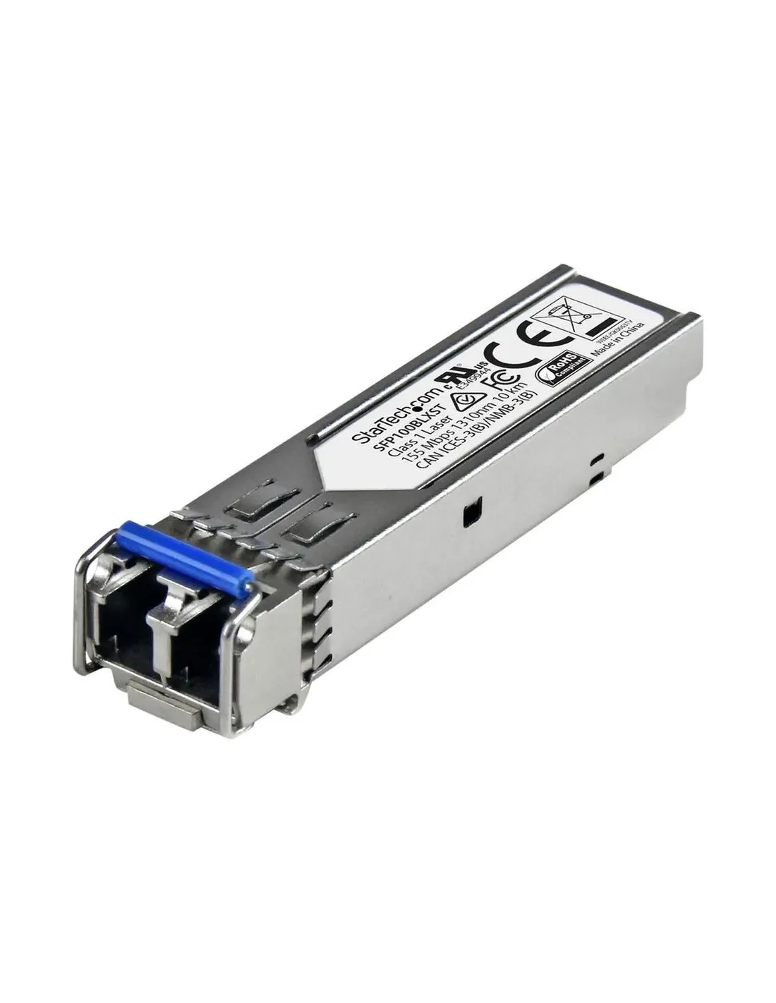Características del StarTech.com Módulo Transceptor SFP de Fibra LC Monomodo 100Base-LXEl **módulo transceptor SFP de StarTech.com** está diseñado para ofrecer una solución de conectividad de fibra óptica fiable, eficiente y compatible con equipos que utilicen interfaces SFP. Gracias a su diseño compacto y su cumplimiento con el estándar **100Base-LX**, es ideal para redes LAN empresariales que requieren **transmisión a larga distancia** a través de cableado monomodo. Su compatibilidad con MSA y tecnologías de diagnóstico digital lo convierten en una opción versátil y profesional.Conectividad estable a larga distanciaEste transceptor permite establecer enlaces de red de alta fiabilidad hasta **10 kilómetros** de distancia, usando fibra óptica monomodo. Además, soporta velocidades de hasta **100 Mbps**, garantizando un rendimiento adecuado para aplicaciones de red críticas.Velocidad de transferencia: hasta 100 MbpsAlcance máximo: 10 km mediante fibra monomodoTipo de conector: LC (modo simple, doble vía)Compatible con MSA y diagnóstico digital (DDM/DOM)Gracias a su compatibilidad con el estándar **MSA (Multi-Source Agreement)**, este módulo puede integrarse sin problemas en una amplia variedad de dispositivos de red. Incluye soporte para **Digital Diagnostics Monitoring (DDM)** y **Digital Optical Monitoring (DOM)**, permitiendo supervisar parámetros críticos como temperatura, potencia óptica y voltaje para una gestión más precisa de la red.Cumple con MSA para amplia compatibilidadFunciones de diagnóstico DDM y DOM integradasSoporta modo dúplex completo y mitad dúplexDiseño compacto y resistenteEl factor de forma SFP facilita la instalación en dispositivos compatibles, incluso en entornos con limitaciones de espacio. Su carcasa metálica en color plata proporciona una buena disipación térmica, y está fabricado para operar en un rango amplio de temperatura y humedad.Diseño compacto: solo 5,84 cm de profundidadRango de temperatura operativa: de 0 °C a 70 °CHumedad operativa: del 5% al 95%Otras especificacionesColor: PlataPeso: 30 gDimensiones: 5,84 cm (profundidad) x 1,39 cm (anchura) x 1,26 cm (altura)Tipo de dispositivo: Módulo transceptor SFP (mini-GBIC)Tecnología de conectividad: CableadoProtocolo: 100Mb LANLongitud de onda óptica: 1310 nmCumplimiento de normativas: FCC, RoHS, WEEE, RCM, IEEE 802.3u
