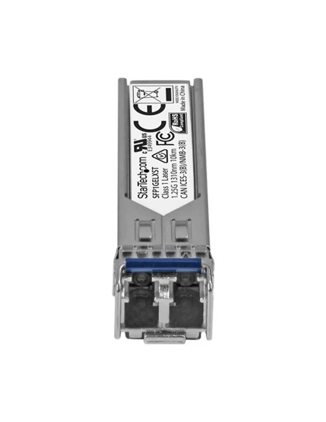 Características del StarTech.com Módulo SFP Compatible con Juniper SFP-1GE-LXEl **módulo transceptor SFP de StarTech.com** está diseñado para ofrecer una solución fiable y económica de conectividad de red por fibra óptica. Compatible con dispositivos Juniper que usen el modelo EX-SFP-1GE-LX, es ideal para entornos empresariales que requieren **transmisión de datos a larga distancia con alta estabilidad y eficiencia**. Con soporte para velocidades de hasta 1,25 Gbps y un alcance de hasta 10 km, este módulo cumple con los principales estándares de la industria.Conectividad de largo alcance y alto rendimientoEste transceptor admite el estándar **1000Base-LX**, permitiendo la transmisión de datos a través de fibra monomodo hasta **10 km** de distancia. Es una opción excelente para redes empresariales, campus universitarios o centros de datos que necesiten enlaces de alta velocidad y bajo retardo.Velocidad de transmisión de hasta 1,25 GbpsAlcance de hasta 10 km sobre fibra monomodoLongitud de onda óptica: 1310 nmCompatibilidad garantizada y fácil integraciónDiseñado como reemplazo directo del modelo **Juniper EX-SFP-1GE-LX**, este módulo SFP cumple con los estándares **MSA** para garantizar la interoperabilidad con una amplia gama de equipos de red. Además, incorpora funciones avanzadas como **DDM (Digital Diagnostics Monitoring)**, que permite el monitoreo en tiempo real del rendimiento óptico.Compatible con equipos Juniper y otros fabricantes MSAFunción DOM (Digital Optical Monitoring) integradaFácil instalación tipo hot-swapDiseño compacto y duraderoCon un diseño metálico en color plata y un formato **mini-GBIC**, este módulo SFP se adapta perfectamente a entornos donde el espacio es limitado. Su estructura robusta garantiza un rendimiento fiable incluso en condiciones de trabajo exigentes.Dimensiones: 5,66 x 1,37 x 1,25 cmPeso: 28 gRango de temperatura de operación: de 0 °C a 70 °CCompatibilidad normativa y fiabilidad certificadaEste módulo cuenta con certificaciones que aseguran su cumplimiento con los principales estándares internacionales de seguridad y medio ambiente. Está aprobado por **RoHS**, **UL**, **FCC** y cumple con el estándar **IEEE 802.3z**.Certificaciones: RoHS, UL, FCC, MSACumple con IEEE 802.3zProtocolo de interconexión: 1GbEOtras especificacionesTipo de dispositivo: Módulo de transceptor SFP (mini-GBIC)Tipo de cableado: 1000Base-LXInterfaz: 1 x Ethernet 1000Base-LX - conector LC hembraModo de transmisión: Dúplex completoHumedad de funcionamiento: 5% - 95%