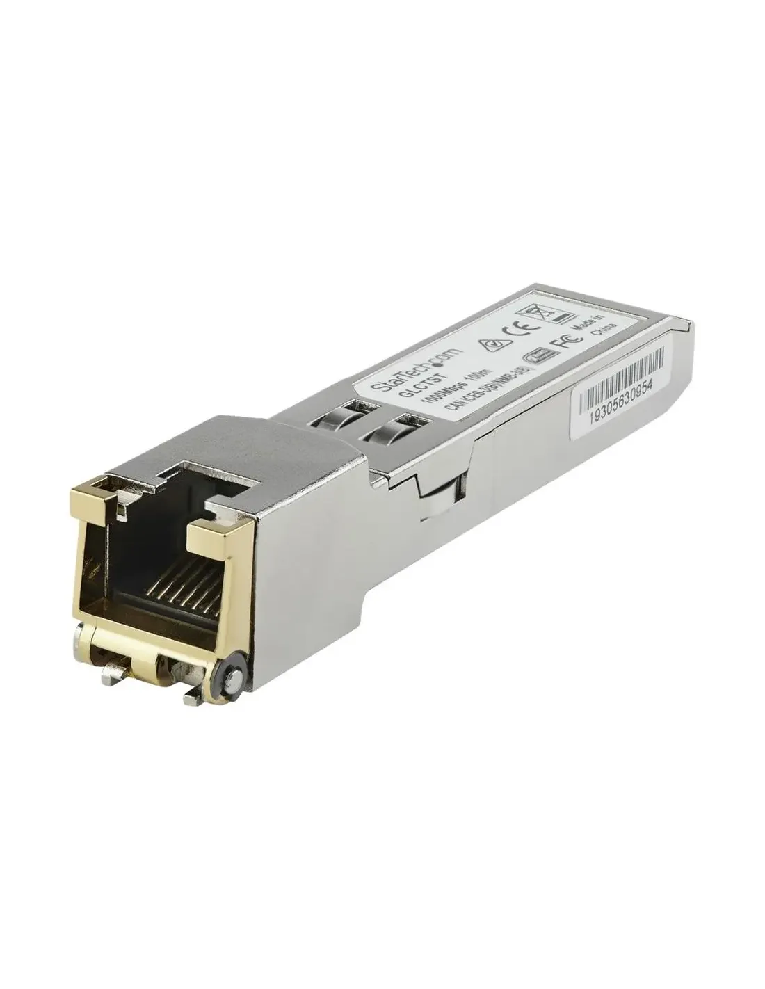 Características del StarTech.com Módulo Transceptor SFP Compatible con Juniper SFP-GE10KT15R13El **módulo transceptor SFP de StarTech.com** es una solución fiable y rentable para entornos de red profesionales que requieren compatibilidad con dispositivos Juniper, como el modelo **SFP-GE10KT15R13**. Diseñado para aplicaciones de red de 1 Gbps, este módulo garantiza una transmisión de datos estable y eficiente hasta 100 metros, utilizando cableado Ethernet estándar.Conectividad fiable para entornos exigentesEste transceptor de cobre ofrece una conexión Ethernet Gigabit a través de una interfaz RJ-45, facilitando la integración en redes ya existentes. Ideal para centros de datos, empresas o entornos industriales que requieren un rendimiento constante.Interfaz: 1 x RJ-45 hembra (1000Base-T)Velocidad de transmisión: 1 GbpsDistancia máxima: 100 metrosDiseño compacto y compatibleGracias a su formato SFP (mini-GBIC), este módulo se integra fácilmente en switches, routers o dispositivos de red con ranura SFP. Es compatible con el estándar MSA, lo que garantiza su interoperabilidad con una amplia gama de equipos.Tipo de dispositivo: Módulo de transceptor SFPFormato: Módulo de inserciónCumple con: MSA, FCC, RoHS, REACHFiabilidad a largo plazoCon un tiempo medio entre fallos (MTBF) superior a los 4.6 millones de horas, este módulo ofrece una excelente durabilidad para operaciones críticas, minimizando el riesgo de interrupciones en la red.MTBF: 4.655.371 horasCompatible OEM: Dell EMC SFP-1G-TPeso: 30 gOtras especificacionesProtocolo de interconexión: 1GbETecnología de conectividad: CableadoDimensiones del módulo: 5.84 cm x 1.39 cm x 1.26 cmDimensiones embalaje: 11.5 cm x 9 cm x 3.1 cmPeso con embalaje: 50 g