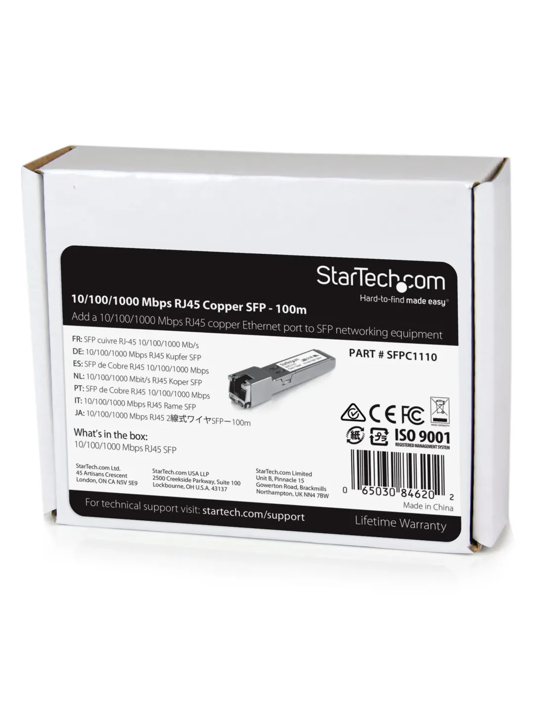 StarTech.com Módulo Transceptor SFP Compatible con el Modelo SFP-GE-T de Cisco - 1000BASE-T - SFP a RJ45 Cat6 / Cat5e - 10/100/1000 Mbps - RJ45 - 100m - Cisco IE3400, IE3300, IE3200, Cobre, 1250 Mbit/s, SFP, SFP, 100 m, IEEE 802.3ab