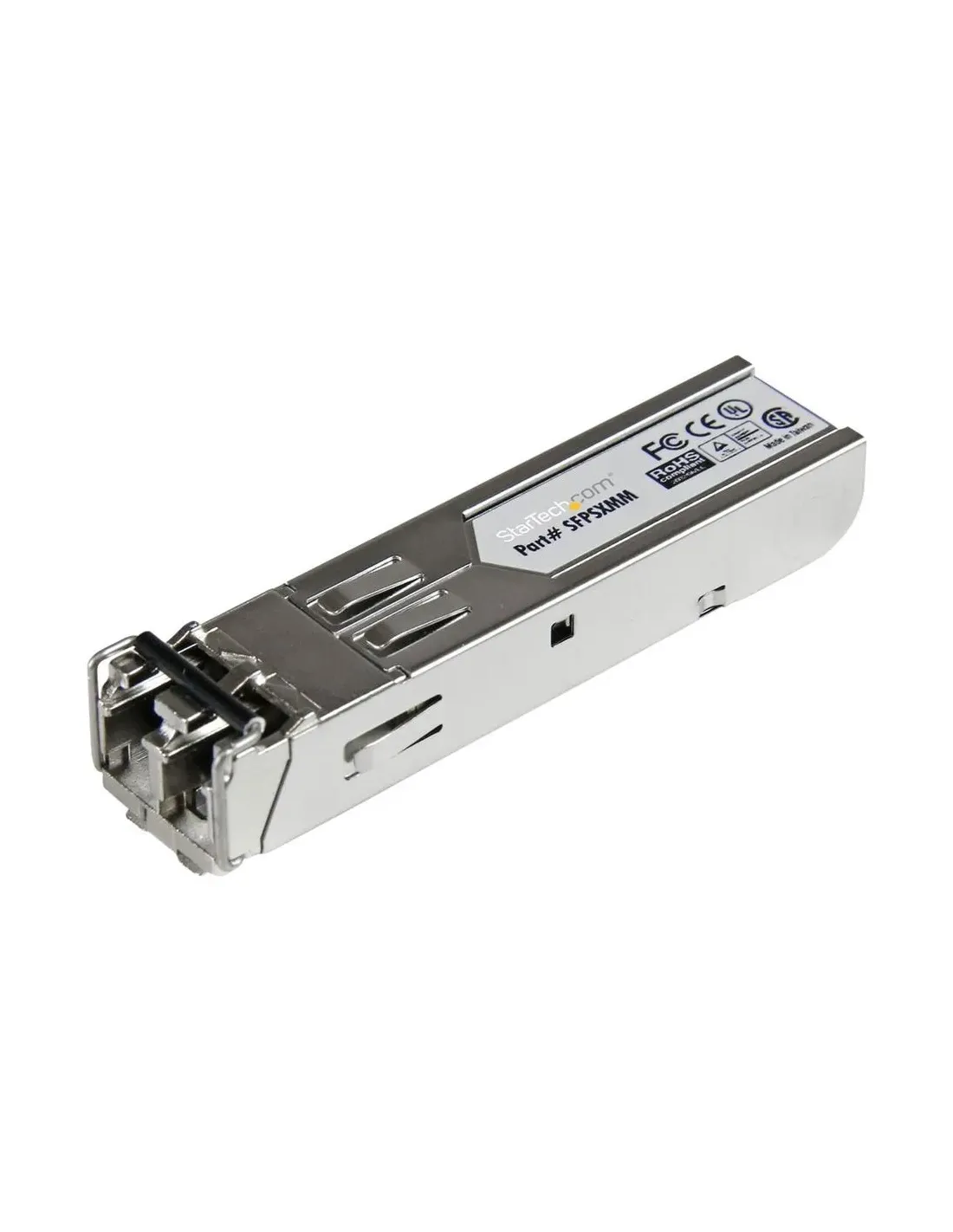 Características del StarTech.com Módulo Transceptor SFP de Fibra LC Multimodo 1000Base-SXEl **módulo transceptor SFP 1000Base-SX de StarTech.com** está diseñado para entornos profesionales que requieren una conexión de red fiable y de alta velocidad mediante fibra óptica. Compatible con el estándar MSA, este módulo permite ampliar la conectividad de switches, routers y otros dispositivos compatibles con ranuras SFP, ofreciendo un rendimiento estable de hasta **1 Gbps** a través de cableado multimodo.Conectividad por fibra con alto rendimientoEste transceptor permite una transmisión de datos eficiente mediante tecnología **1000Base-SX** sobre cable de fibra óptica multimodo, ideal para redes de corto alcance en entornos empresariales o centros de datos.Velocidad de transferencia de hasta 1 GbpsDistancia máxima de transmisión: 550 metrosConector LC doble para enlaces de fibra multimodoCompatibilidad estándar y fácil integraciónGracias a su compatibilidad con el estándar **MSA** y la norma **IEEE 802.3z**, este módulo se integra fácilmente en una amplia variedad de dispositivos de red con ranura SFP. Ofrece soporte para **funcionamiento dúplex completo** y garantiza una comunicación estable y continua.Interfaz SFP (mini-GBIC) de inserción rápidaCumple con IEEE 802.3z y normas como RoHS, UL, FCCIdeal para conmutadores y routers compatibles con SFPDiseño compacto y resistenteEl módulo está construido con un formato compacto y materiales de calidad, preparado para funcionar en condiciones ambientales exigentes. Su diseño garantiza un ajuste seguro en la ranura SFP y una conexión sin interrupciones.Dimensiones: 5.5 cm x 1.3 cm x 0.9 cmPeso ligero: 18 gRango de temperatura operativa: de 0 °C a 70 °COtras especificacionesLongitud de onda óptica: 850 nmTecnología de conectividad: cableadoProtocolo de interconexión: 1GbEHumedad de funcionamiento: 5% - 95%Certificaciones: CSA, UL, TUV, FCC, RoHS