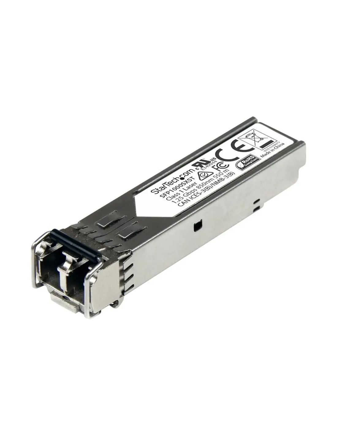 Características del StarTech.com Módulo SFP 1000Base-SX Compatible MSAEl **módulo transceptor SFP de StarTech.com** es una solución compacta, fiable y compatible con MSA, ideal para entornos de redes empresariales que requieren una transmisión de datos eficiente a través de fibra óptica. Diseñado para redes Gigabit Ethernet, este dispositivo ofrece **rendimiento de alta velocidad y una instalación sencilla**, siendo perfecto para switches, routers o cualquier equipo con puertos SFP. Su diseño estándar garantiza la compatibilidad con una amplia gama de equipos de red.Transmisión eficiente a través de fibra ópticaEste módulo SFP admite conexiones de fibra multimodo mediante conector LC, ofreciendo una transmisión estable de hasta **550 metros** con una longitud de onda de **850 nm**. Es ideal para entornos LAN de tamaño medio o aplicaciones de centro de datos que requieran alta velocidad y fiabilidad en la conexión.Tipo de conexión: LC multimodo (MMF)Velocidad de transmisión: hasta 1,25 GbpsDistancia máxima: 550 metrosCompatibilidad, fiabilidad y diagnóstico avanzadoEl módulo cumple con el estándar **IEEE 802.3z** y es compatible con especificaciones MSA, lo que asegura un amplio rango de interoperabilidad con dispositivos de red de diferentes fabricantes. Incorpora tecnologías como **Digital Diagnostics Monitoring (DDM)** y **modo dúplex completo**, que permiten una gestión más precisa del rendimiento y del estado del enlace óptico.Cumplimiento con MSA, IEEE 802.3zDDM integrado para monitorización digitalModo dúplex completo y soporte DOMDiseño compacto y robusto para uso continuoCon un formato mini-GBIC, este módulo es fácil de instalar y reemplazar sin interrumpir la operación de la red. Está diseñado para funcionar en un amplio rango de temperatura y humedad, lo que lo hace apto para condiciones exigentes.Formato: Módulo de inserción SFP (mini-GBIC)Rango de temperatura de funcionamiento: 0 °C a 70 °CHumedad operativa: 5% - 95%Otras especificacionesColor: PlataTecnología de conectividad: CableadoProtocolo de interconexión: 1GbEInterfaces: 1 x Ethernet 1000Base-SX LC multimodo x2Normativas: FCC, RoHS, MSA, RCM, WEEEDimensiones: 5,84 x 1,39 x 1,26 cmPeso: 30 g