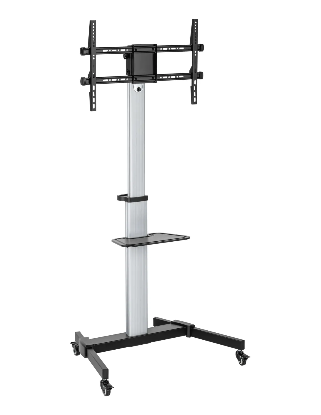 Este soporte de suelo para TV de aluminio está diseñado para pantallas de entre 37" y 86", con una capacidad máxima de carga de 50 kg y compatibilidad VESA de hasta 600x400. Su estructura de aluminio ligero ofrece un aspecto moderno y elegante sin renunciar a la resistencia.