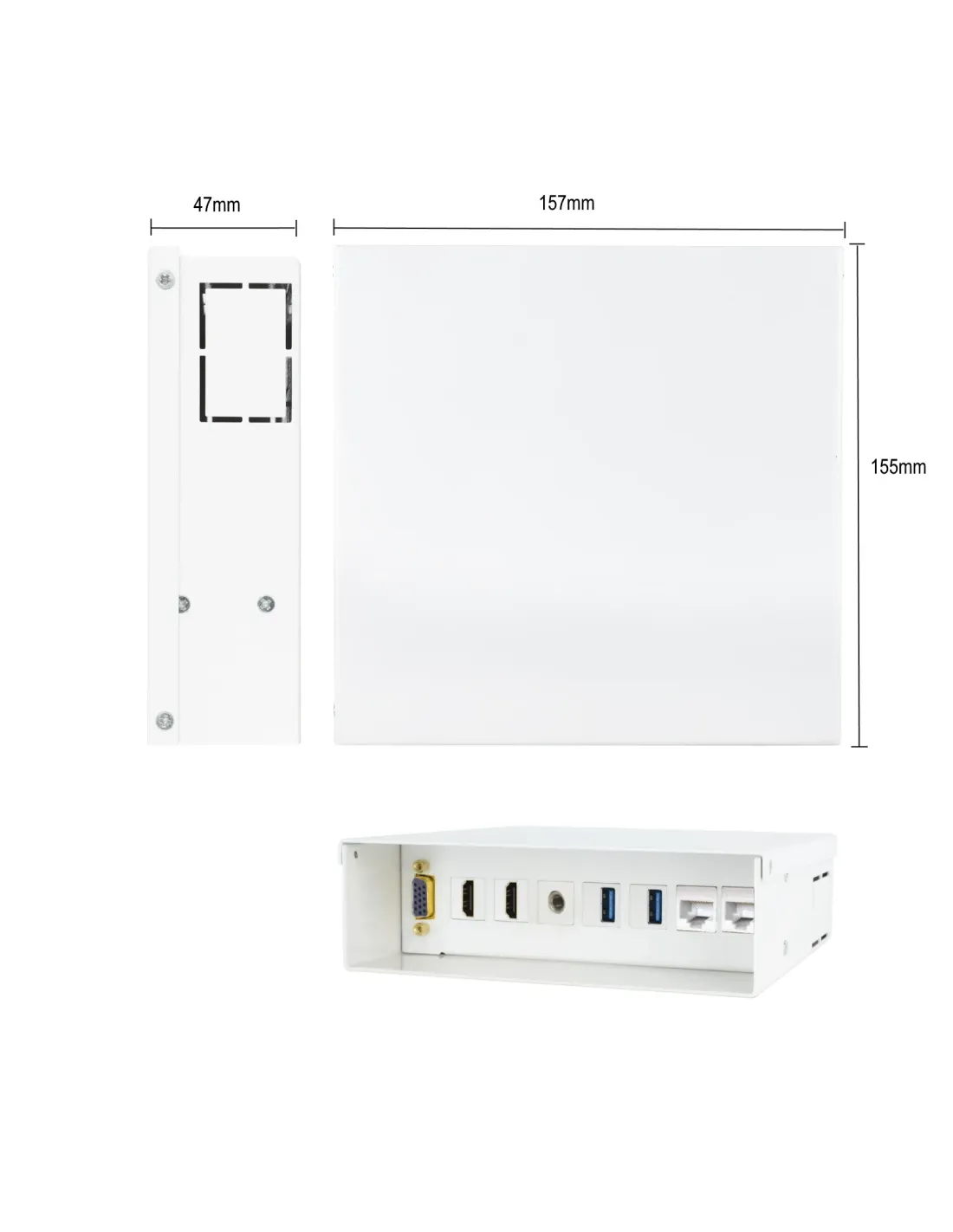 Ewent EW1555. Ancho: 157 mm, Altura: 155 mm, Profundidad: 47 mm. Ancho del paquete: 230 mm, Profundidad del paquete: 70 mm, Altura del paquete: 230 mm. Ancho de la caja principal: 500 mm, Longitud de la caja: 190 mm, Alto de la caja principal: 280 mm