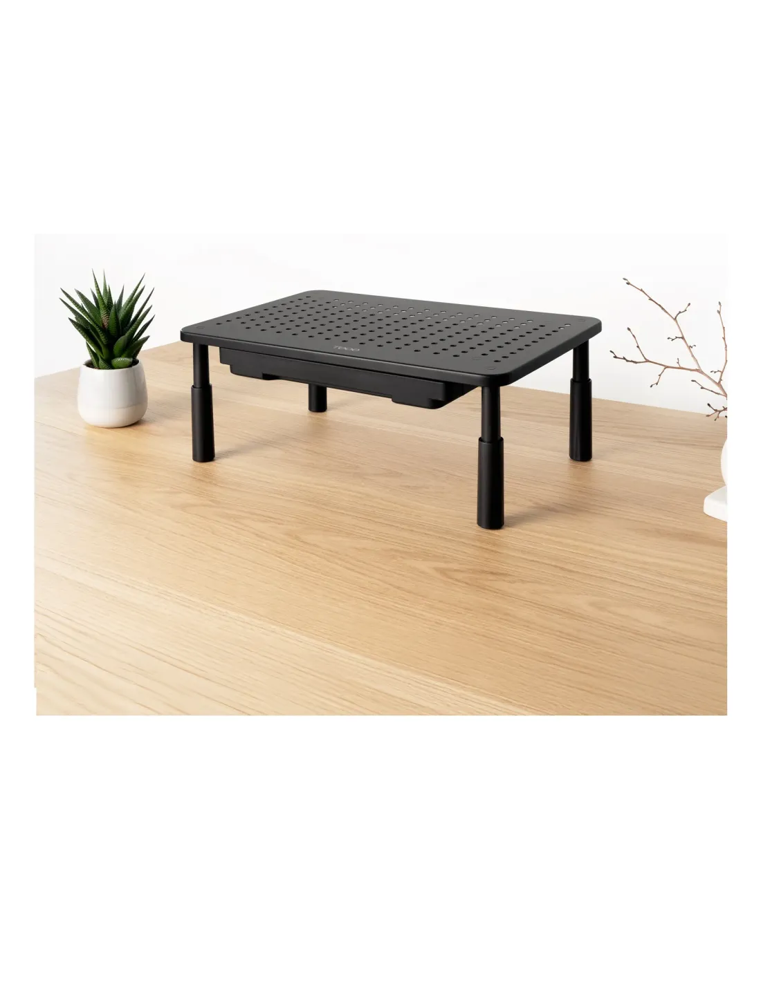 Soporte de gran calidad y robustez multiusos para monitores, portátiles, impresoras, máquinas de oficinaDiseño ergonómico: eleva la pantalla a la altura más cómoda para una experiencia visual óptima y reducir la fatiga ocular y del cuelloIdeal para escritorios y espacios de trabajo reducidos, maximice su área de trabajo El diseño abierto del soporte funciona como un disipador de colorDispone de un cajón extraíble para mayor organizaciónIncorpora almohadillas de silicona antideslizantes para dar mayor estabilidad y proteger la superficie de trabajo de arañazos Peso máximo soportado 20 kg Regulación de altura: 100/120/140 mm