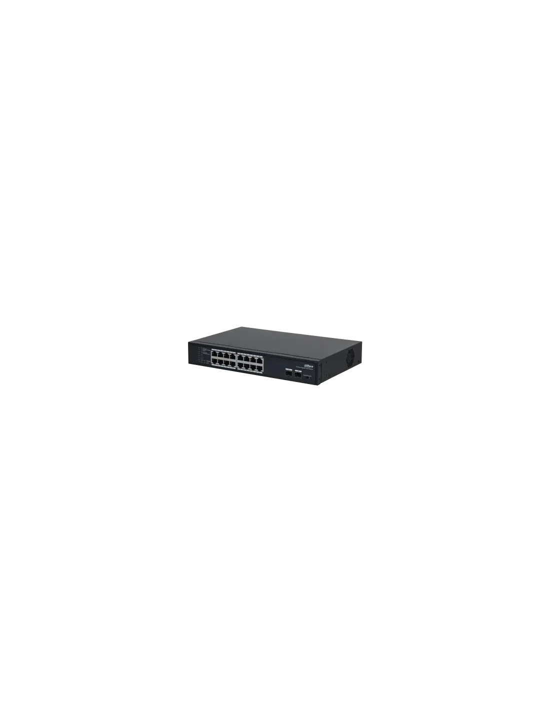 Dahua Technology PoE PFS3218-16GT-135. Tipo de interruptor: No administrado, Capa del interruptor: L2. Puertos tipo básico de conmutación RJ-45 Ethernet: Gigabit Ethernet (10/100/1000), Cantidad de puertos básicos de conmutación RJ-45 Ethernet: 16. Tipo de switch o conmutador óptico: Gigabit Ethernet. Número de módulos SFP instalados: 2. Tabla de direcciones MAC: 8000 entradas, Capacidad de conmutación: 36 Gbit/s. Estándares de red: IEEE 802.3, IEEE 802.3ab, IEEE 802.3af, IEEE 802.3at, IEEE 802.3u, IEEE 802.3x, IEEE 802.3z. Conector eléctrico: Conector de alimentación AC-in. Energía sobre Ethernet (PoE). Montaje de pared, Montaje en rack