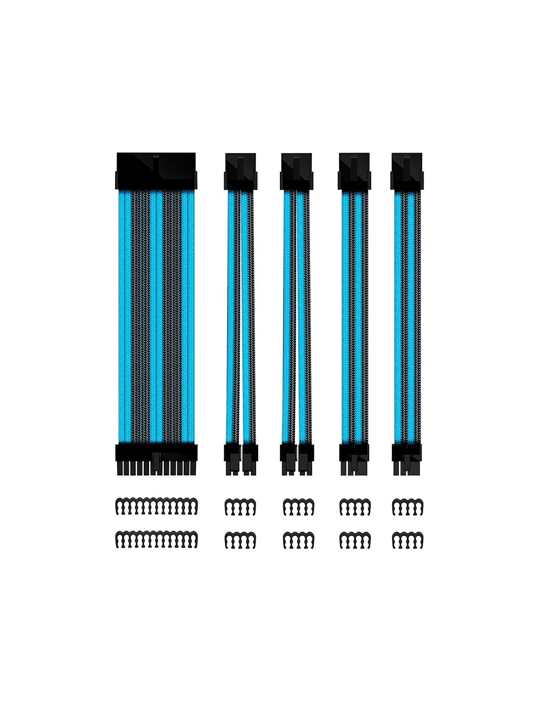 Phoenix siempre en busca de nuevos productos que hagan destacar vuestros setups y lucir así vuestro montaje.El kit de extensores de cables para fuentes de alimentación ATX es la guinda final para vuestros equipos gaming.Este kit está pensado para aportar un orden y estilo pudiendo usar el color que más te guste y pudiendo hacer combinaciones con el resto de accesorios como ventiladores o tiras led.Este kit incluye los extensores para CPU 24 pines, CPU 2 x 8 (4 + 4) y 2 x 8 (6 + 2) pines para tu tarjeta gráfica por lo que no tendrás problemas a la hora de adaptarlo.Para garantizar nuestro estándar de calidad este kit se ha fabricado con cables de 30cm de longitud y calibre 18AWG UL 1007 de 2.2mm de grosor además de su aislamiento 100% para evitar la termocontracción.El uso de este kit es muy sencillo y te ofrecerá un resultado limpio y profesional. Además, incluye 2 peines para cada tipo de cable por lo que el resultado será perfecto y equilibrado.