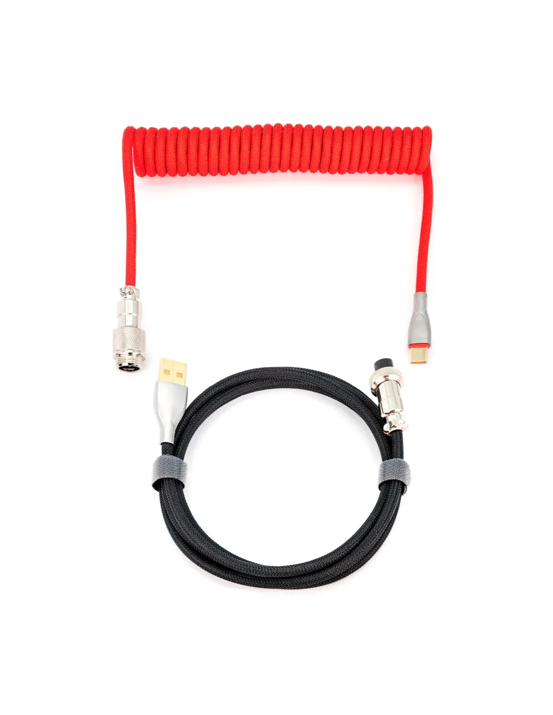 Phoenix kioru cable aviador en espiral con conector tipo c para teclados gaming negro y rojo